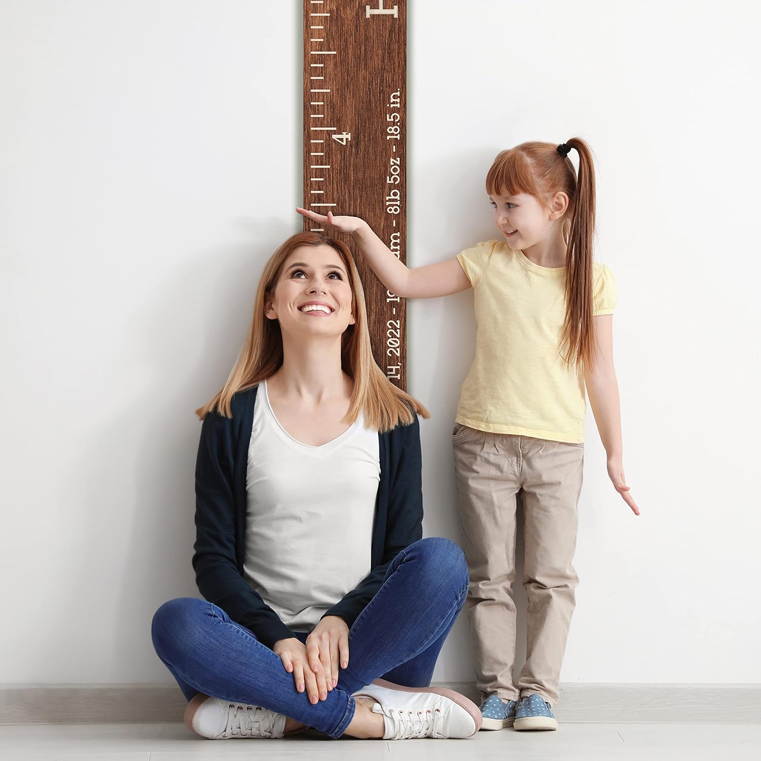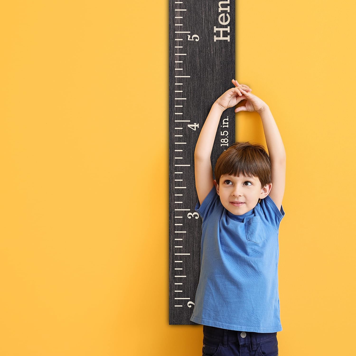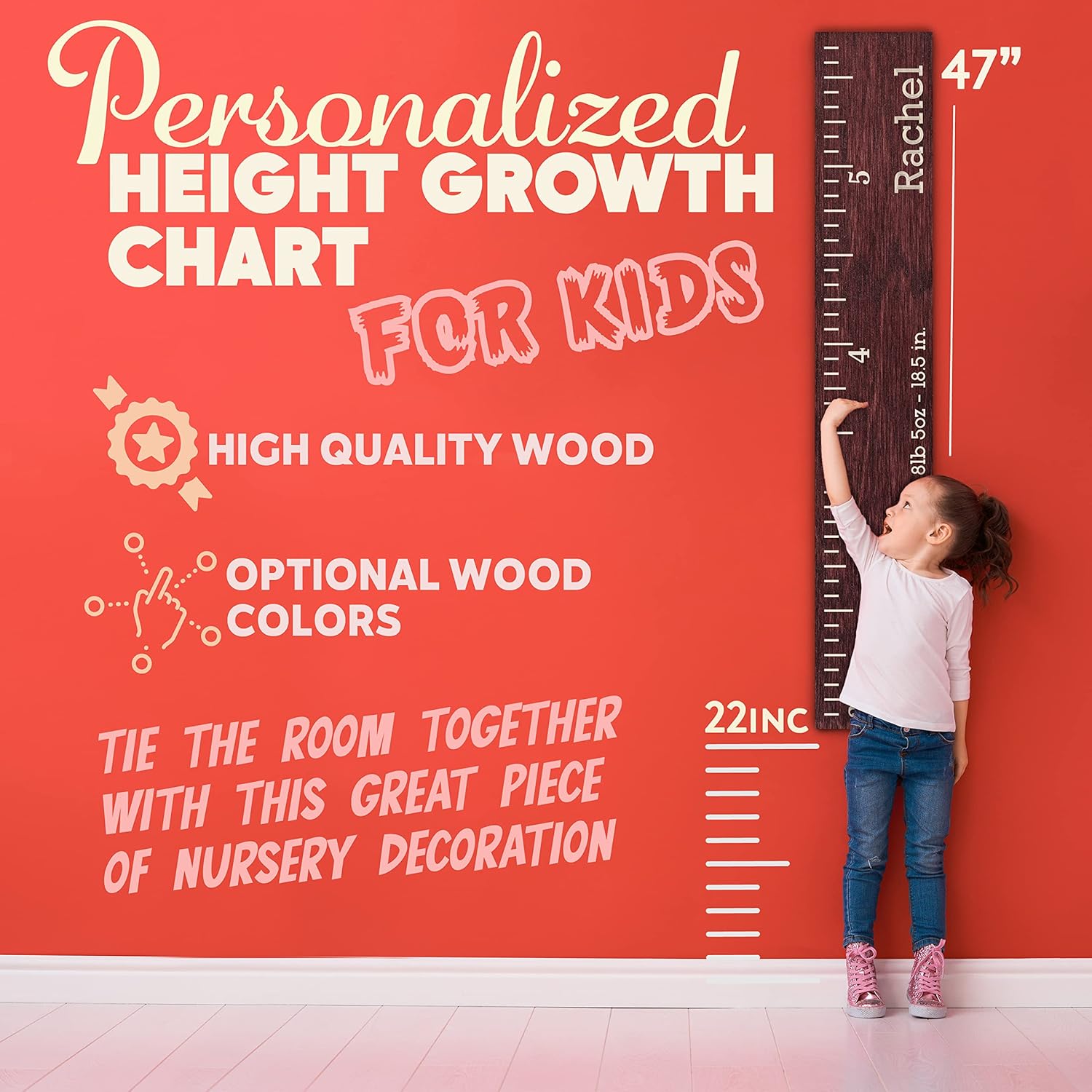 Personalized Wooden Kids Growth Chart Ruler for Boys & Girls, Custom W/Name - Text, 5 Various Wood Colors - Nursery Hanging Wall Decor, Unique Baby Shower Newborn Gift, Wood Height Measure Chart