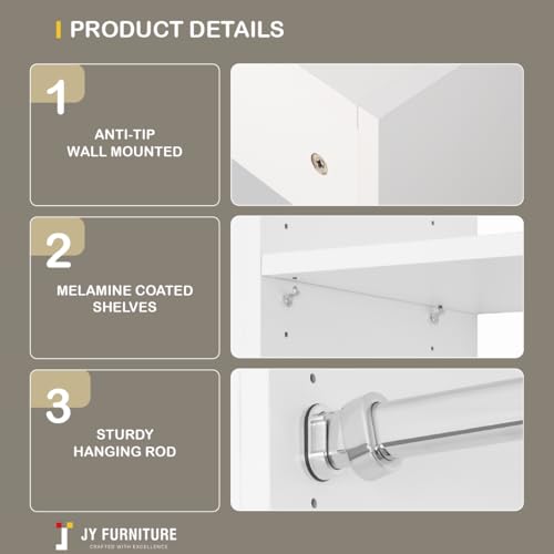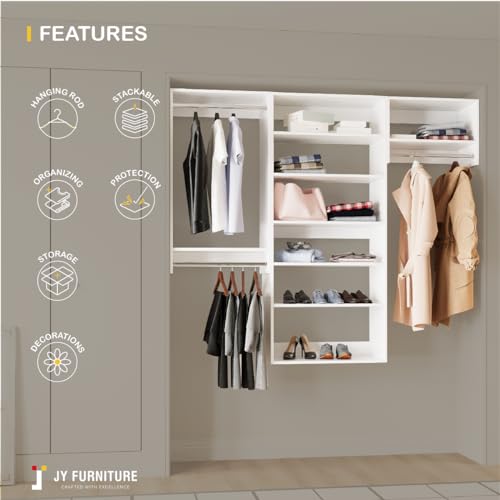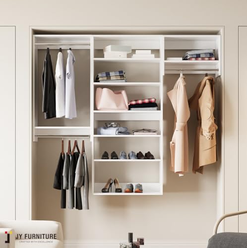 JY Furniture Modular Closet Systems, Wood Closet System with Adjustable Shelves & Hanging Rods, Custom Built-In Set of 3 Wall mounted Clothes for Bedroom, Dressing room (106.5"Wide)