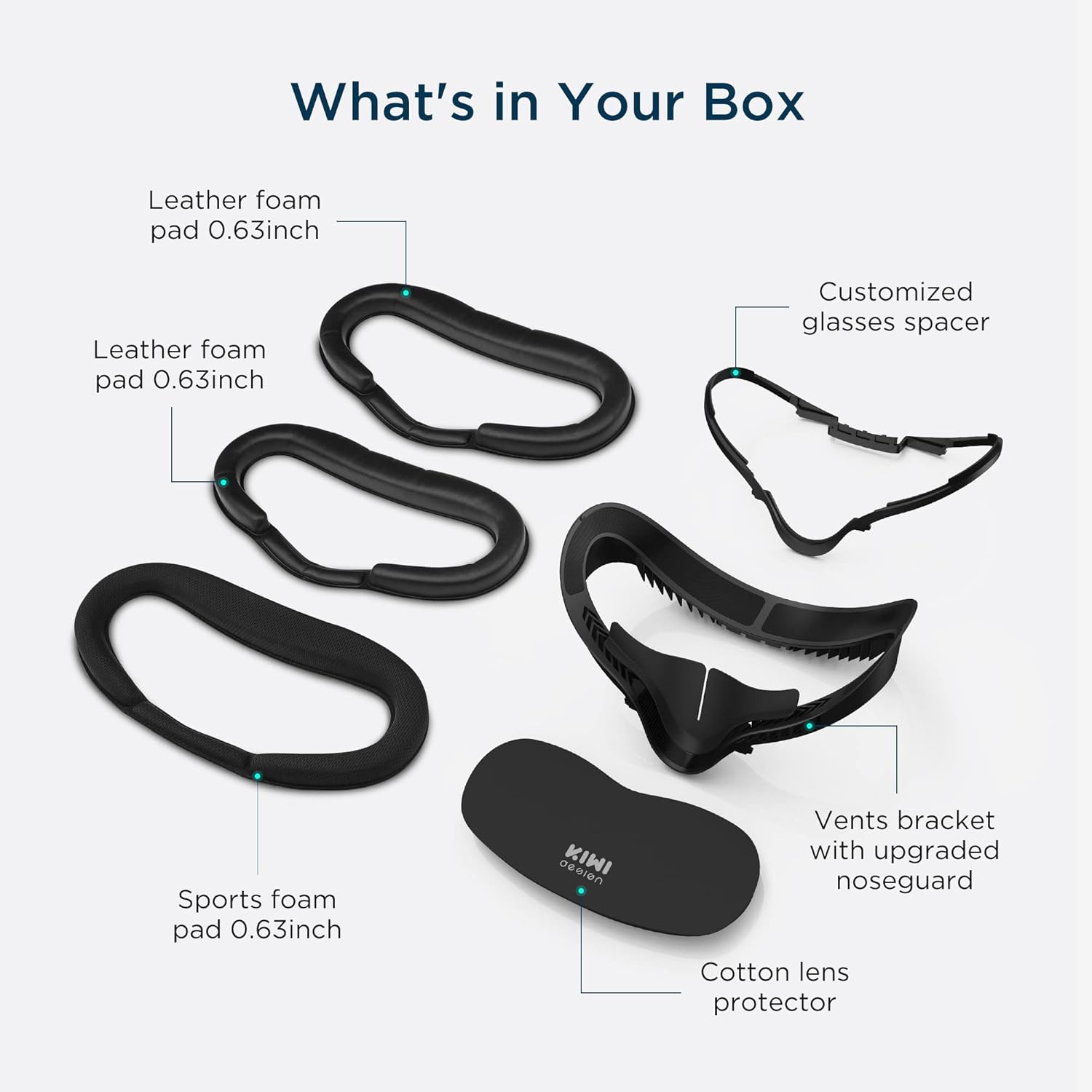 KIWI design Upgraded Face Cushion Fitness Accessories Compatible with Quest 2, with Facial Interface Leather Pad 2, Cloth Sports Pad, Glasses Spacer, and Lens Protector, Air-Circulation Design