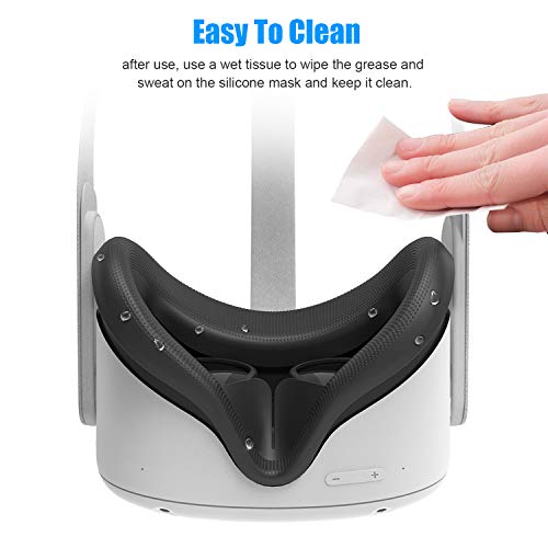 AMVR Face Cushion Pad Replacement for Oculus Quest 2, Silicone Face Cover for Quest 2 Headset, Sweatproof Washable Lightproof Anti-Leakage VR Face Plate Mask Accessories (Black, Only Cover)