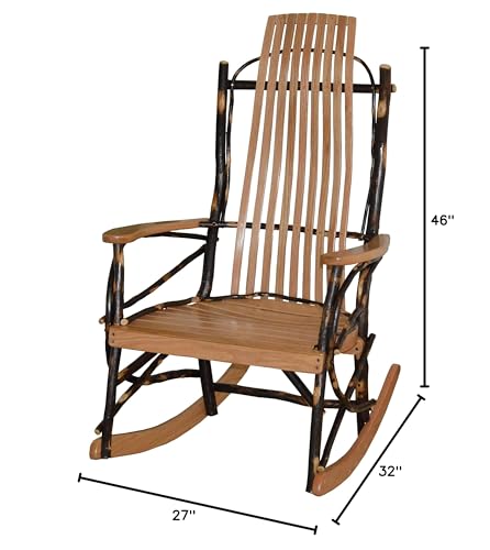 Amish-Made Large 9-Slat Rustic Hickory Rocking Chair