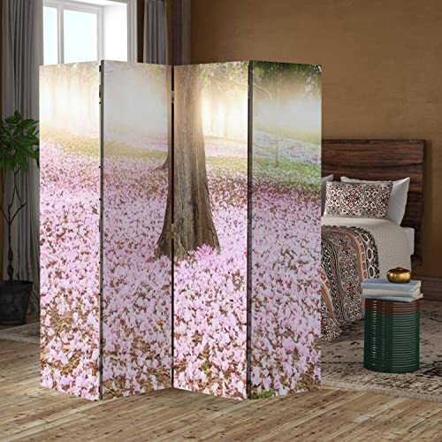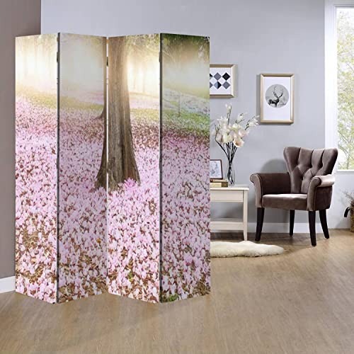 Wood Screen Room Divider Unique Custom Designed Garden beds with Pink Flowers Netherlands Folding Screen Canvas Privacy Partition Panels Dual-Sided Wall Divider Indoor Display Shelves 4 Panels