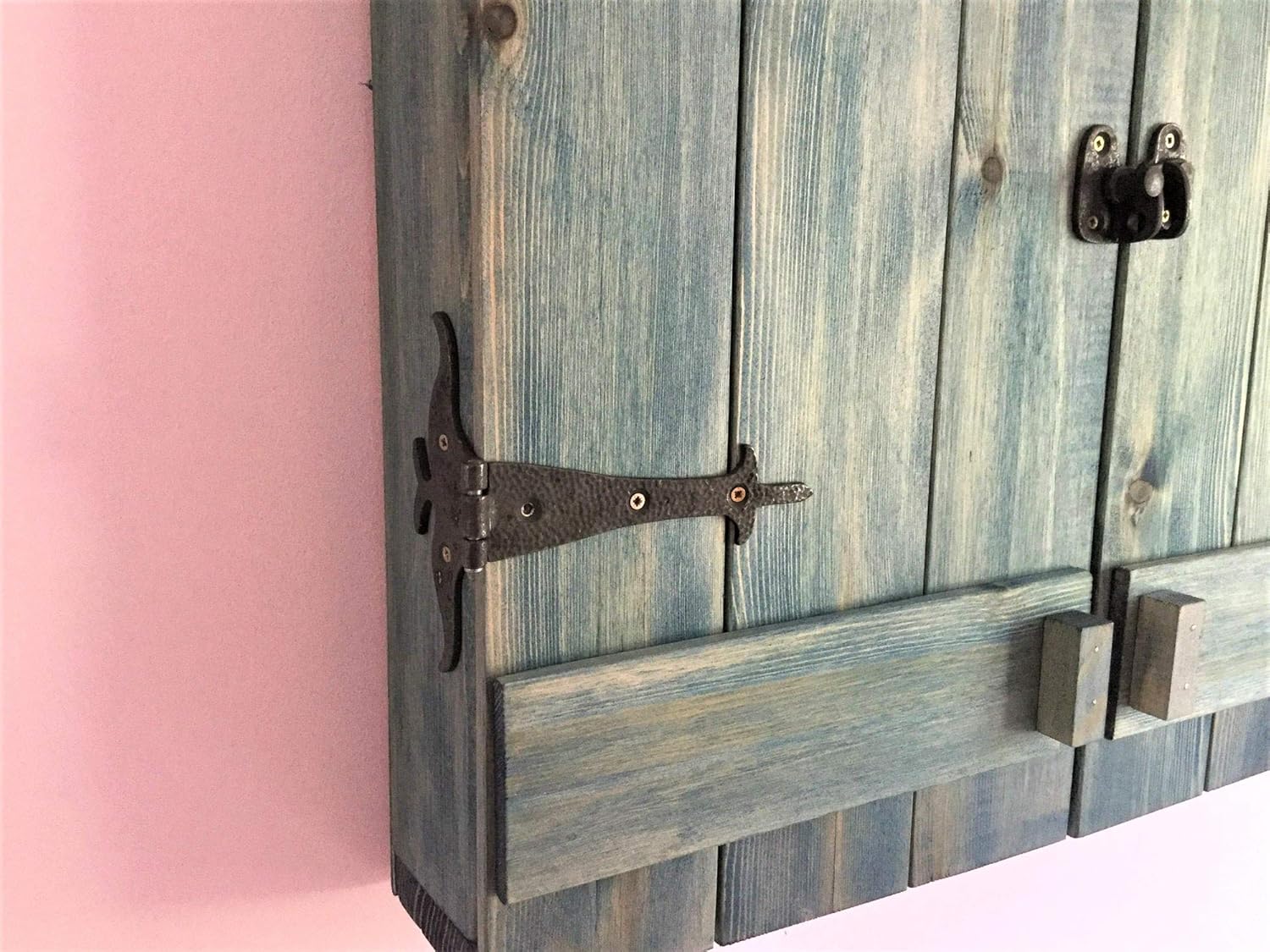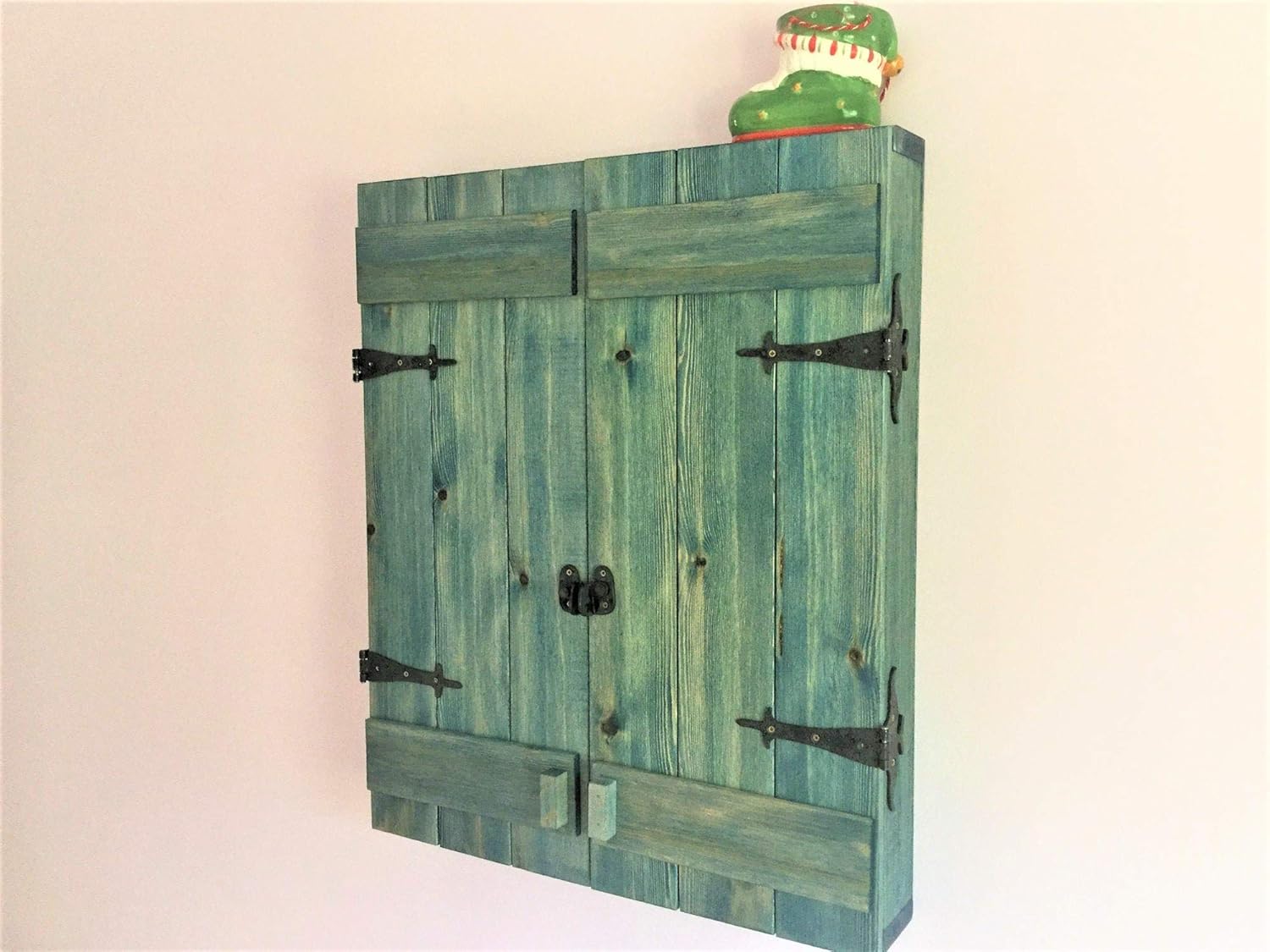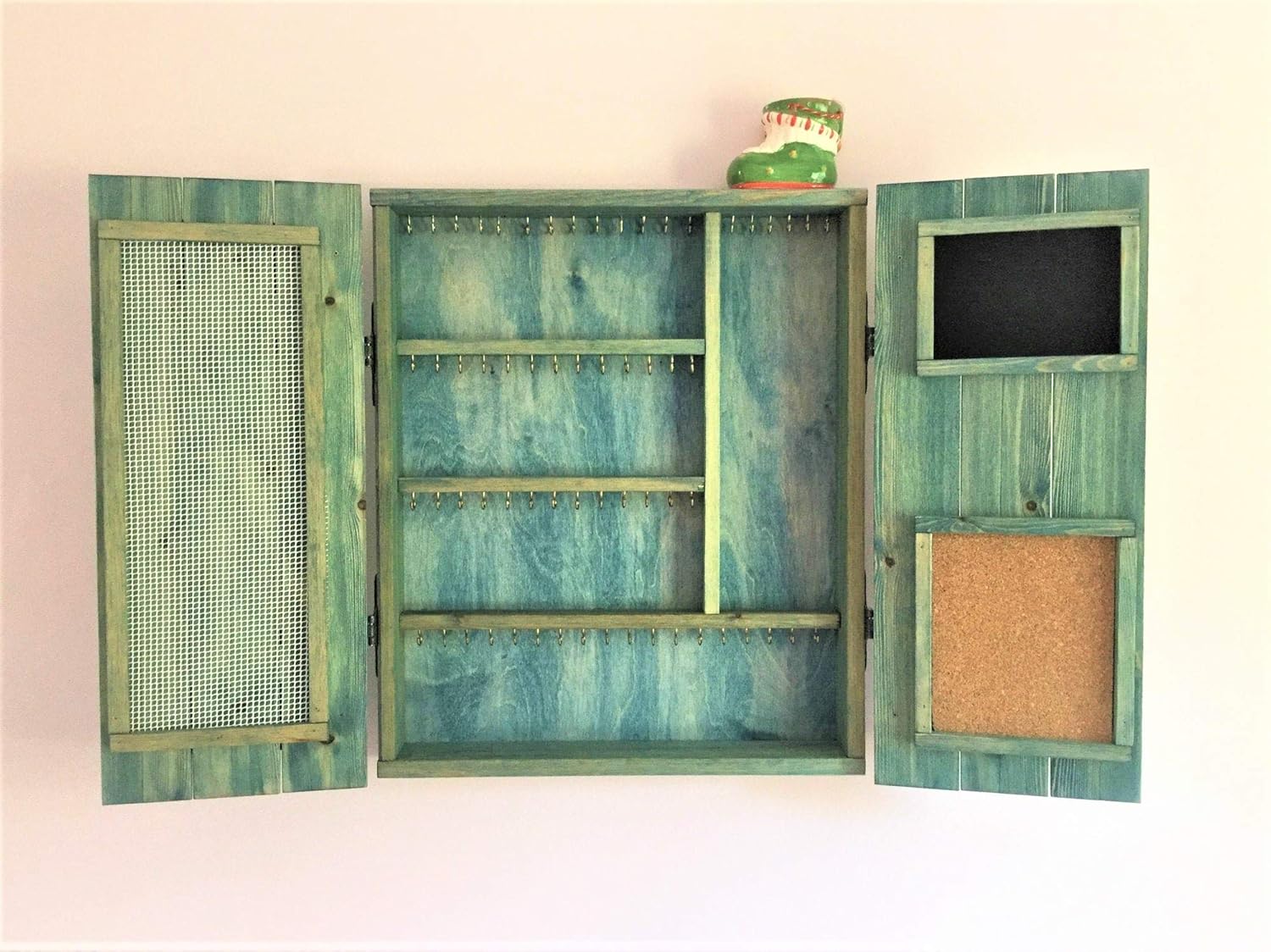 Medium Barn Door Jewelry Cabinet – Solid Wood - Custom Gift - Wall Mounted Earring Organizer/Storage/Armoire/Closet Necklaces, Bracelets, Earrings, Distressed Midnight Indigo Finish