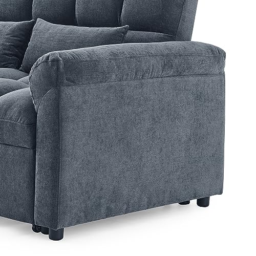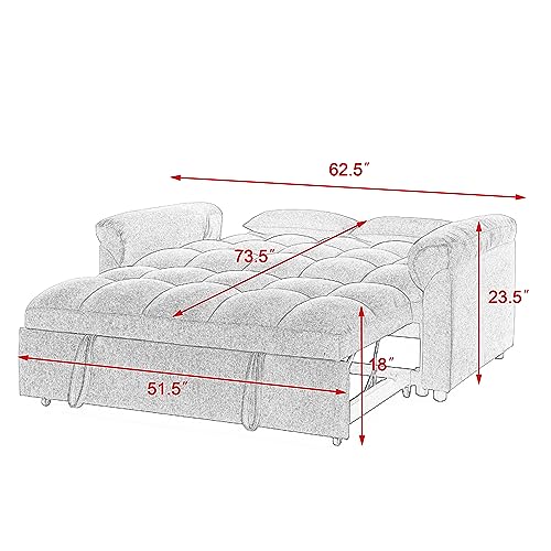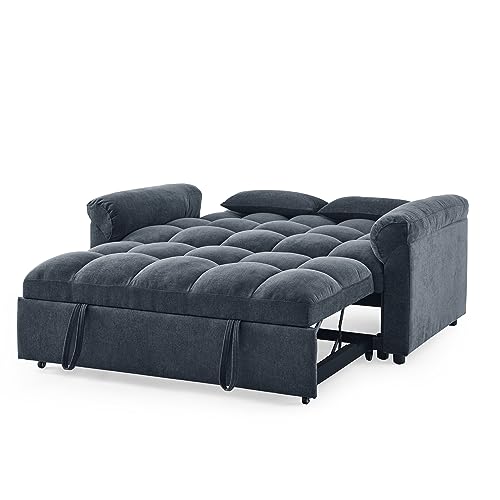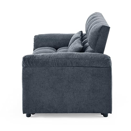 Modern Convertible Sleeper Sofa with Twin XL Size Pull Out Couch Bed, Functional Tufted Loveseat & Daybed for Home Office Apartment Studio Small Space Living Room,Deep Grey Linen with Pillows