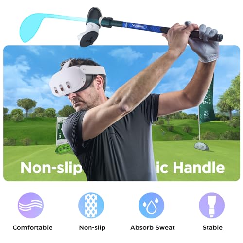 YOGES VR Golf Club Attachment Compatible with Meta Quest 3/ Oculus Quest 2 Controller, Virtual Reality Golf Handle Grips 90 Degree Design Keep Tracking for Golf VR Games (ONLY for Right Controller)