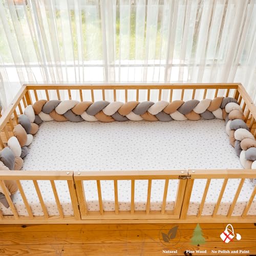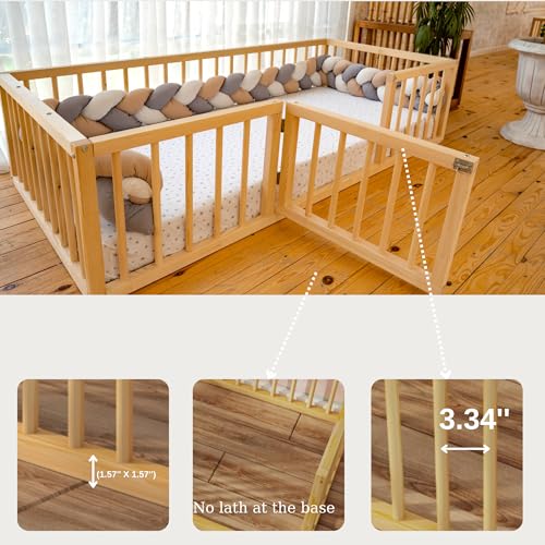 Montessori Floor Bed with Door for Toddler 54.3'' x 75.2'' Full Size | Pine Wood Natural Solid Sturdy Design Floor Bed Frame for Boy and Girls (Full, Height : 19 Inches)