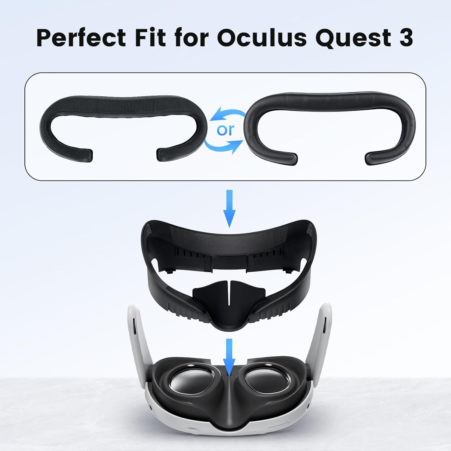 Face Cover Pad for Oculus Quest 3, 2 Replacement Face Cushion Pad(1 Cooling Gel, 1 PU Leather) with Facial Interface Frame, VR Accessories Set for Meta Quest 3 Including Anti-Leakage Nose Pad