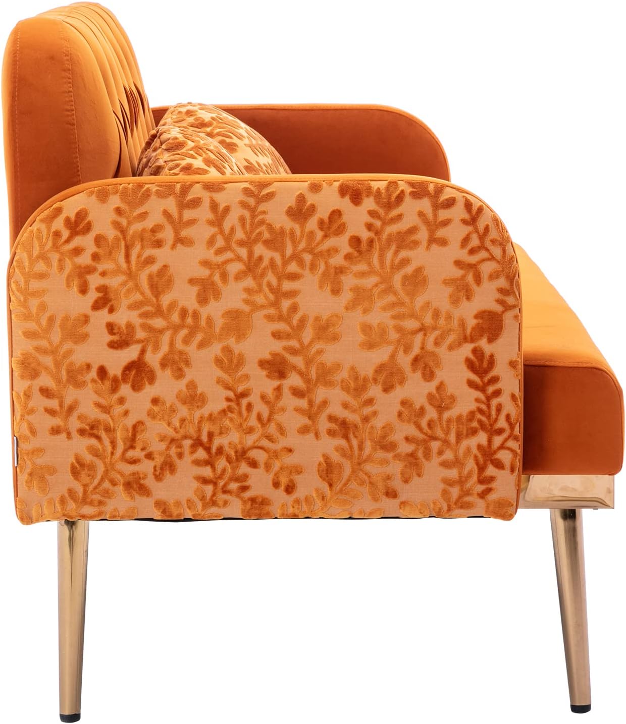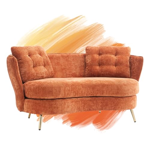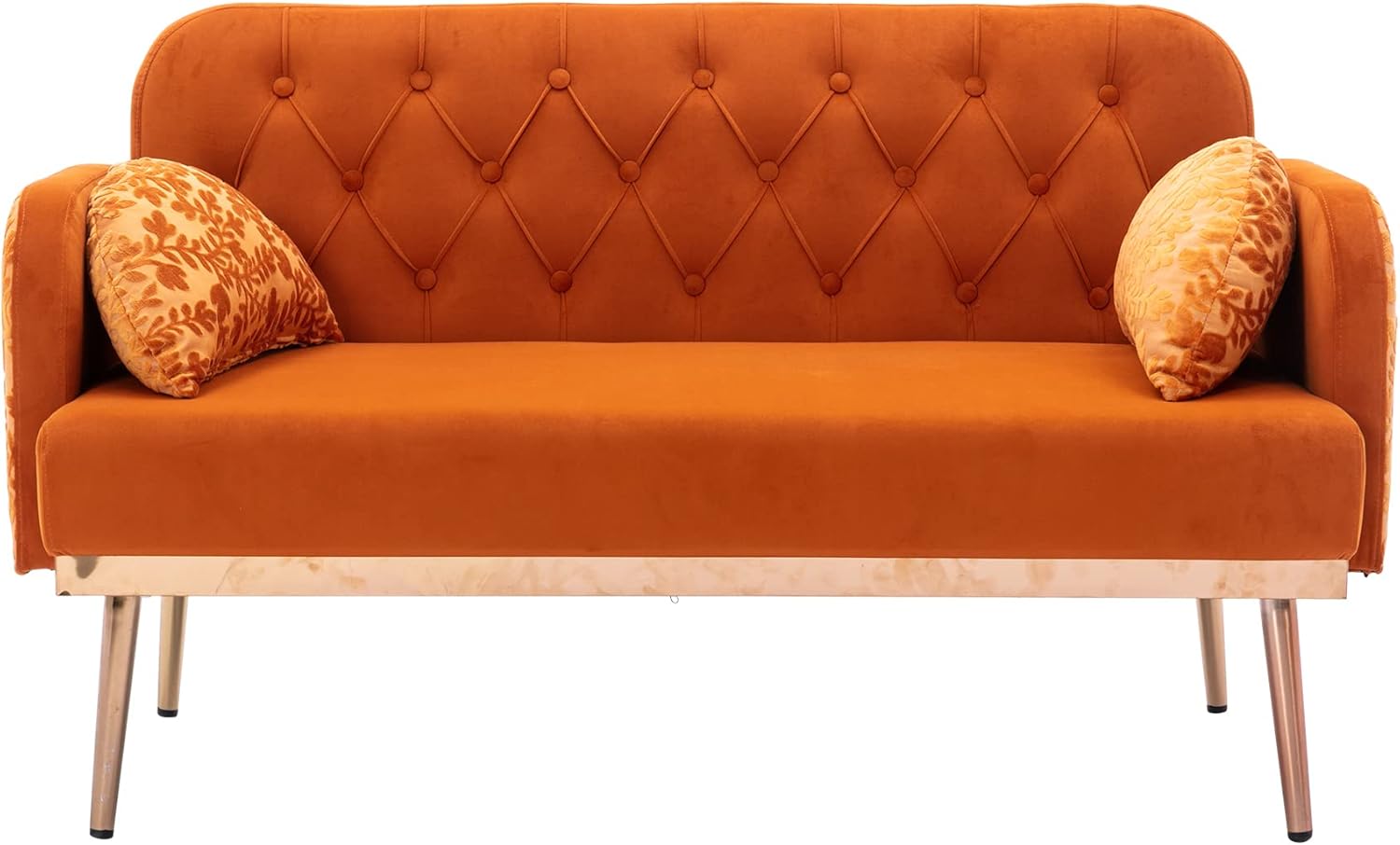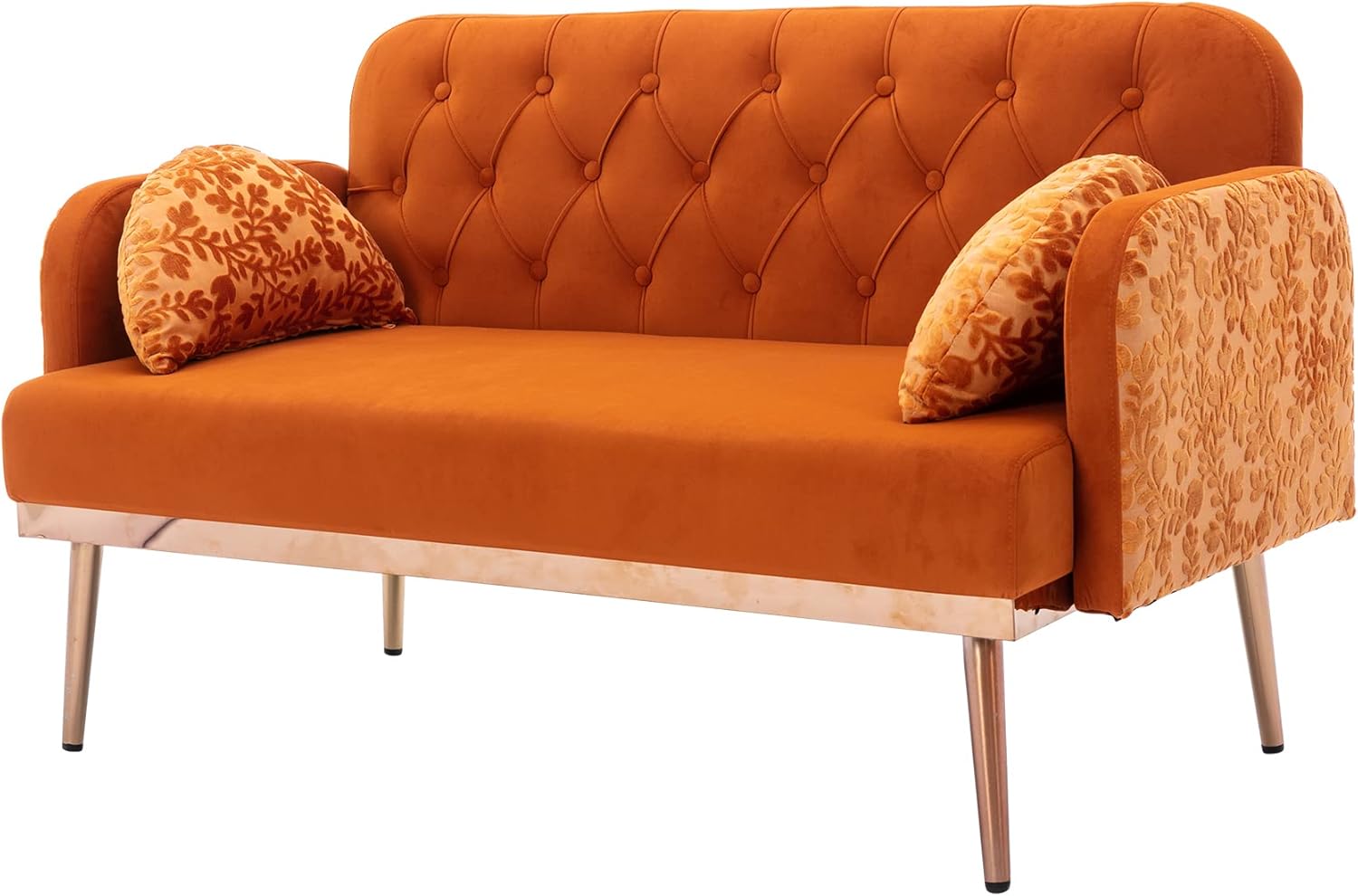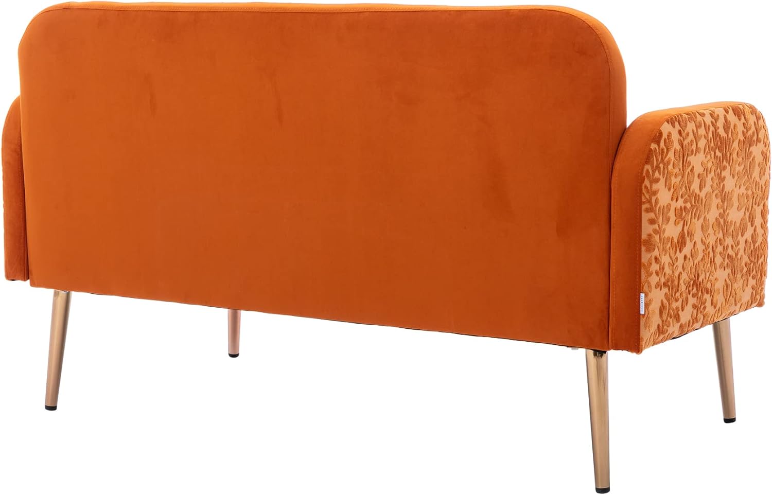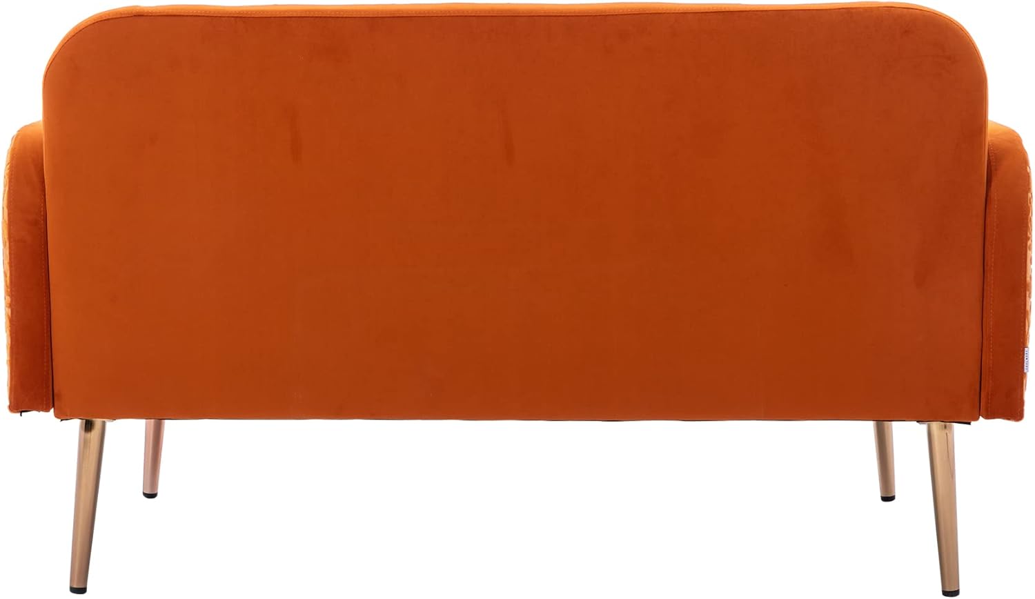 KUIKUI Upholstered Modern Love Seats Sofa, Velvet Small Couch for Small Spaces, Comfy Couch with Metal Feet for Living Room & Apartment, Orange