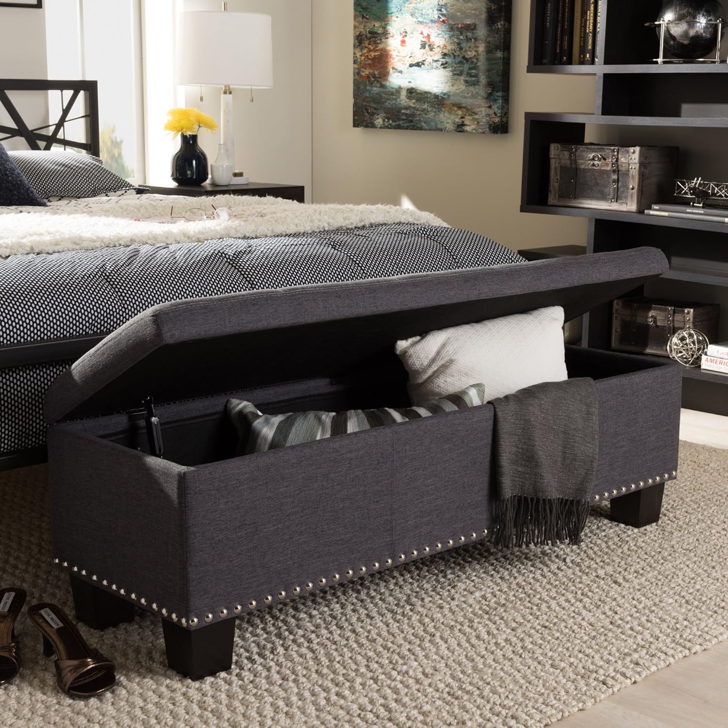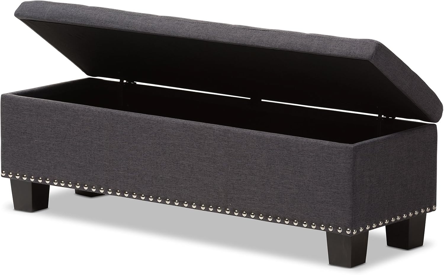 Baxton Studio Sandrine Modern and Contemporary Dark Grey Fabric Button-Tufting Storage Ottoman Bench