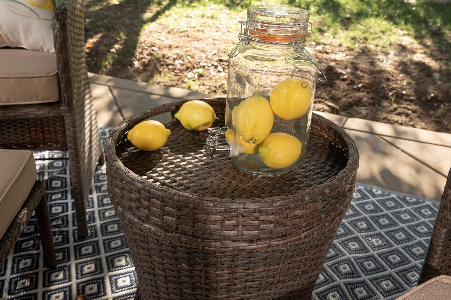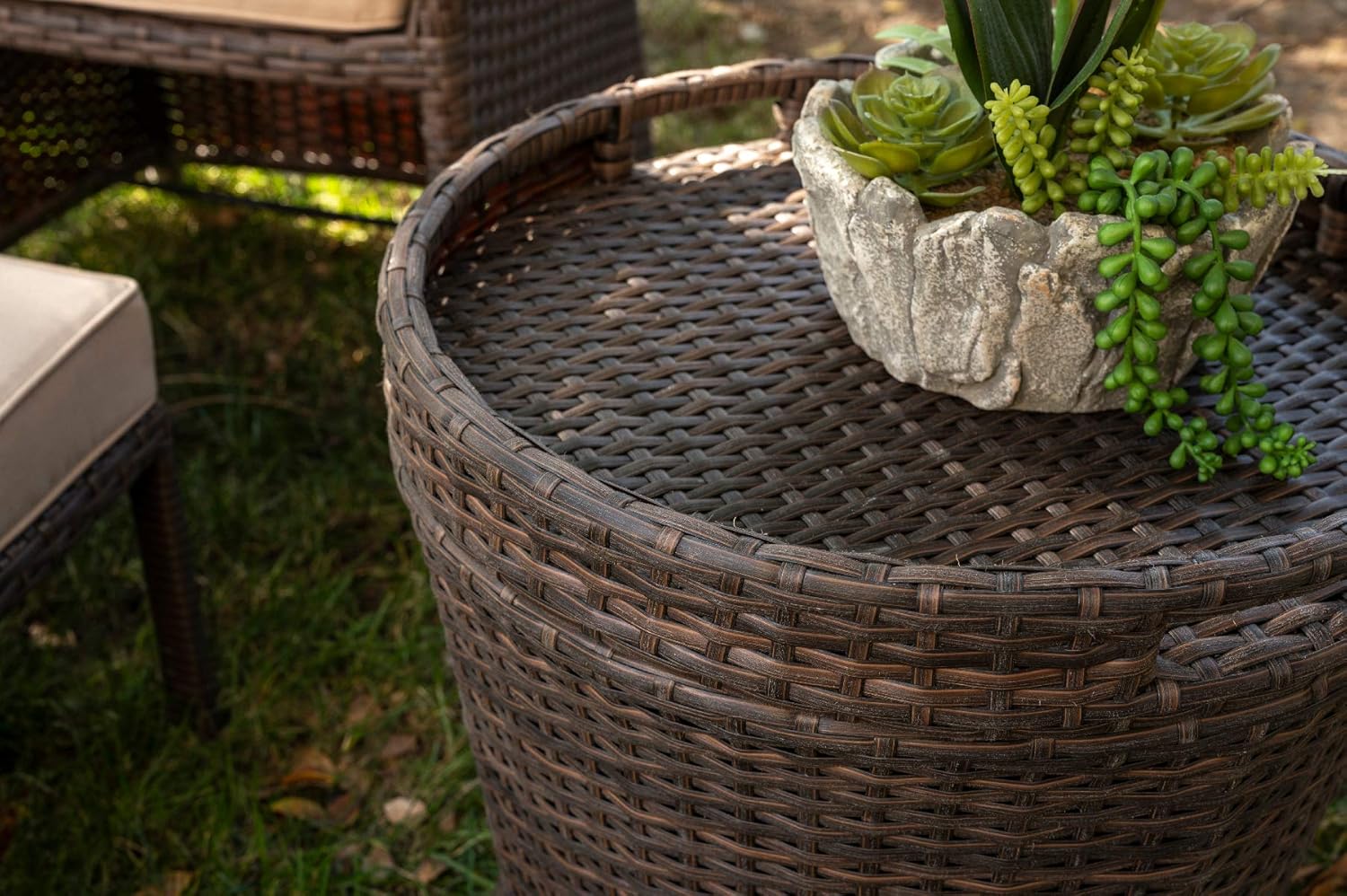 Barton 5 Piece Bistro Sofa Set w/Cushions 2 Chairs 2 Ottomans Multipurpose Outdoor Patio Wicker Rattan Furniture Space Saving