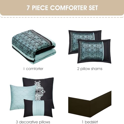 Grand Avenue Grey Comforter Set King Size, 7 Piece, Jacquard Home Decor, Matcking Bed Skirt, Pillows & Shams, All Season Bedding Set