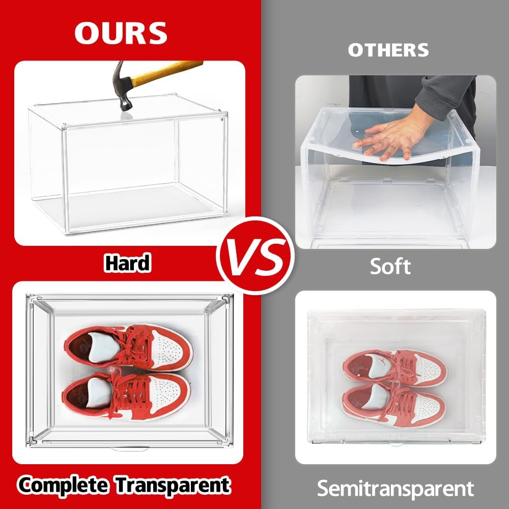 10Pack Acrylic Shoe Boxes Stackable 14.1 * 10.6 * 9in Clear Plastic Display Case for Sneakerheads Boot