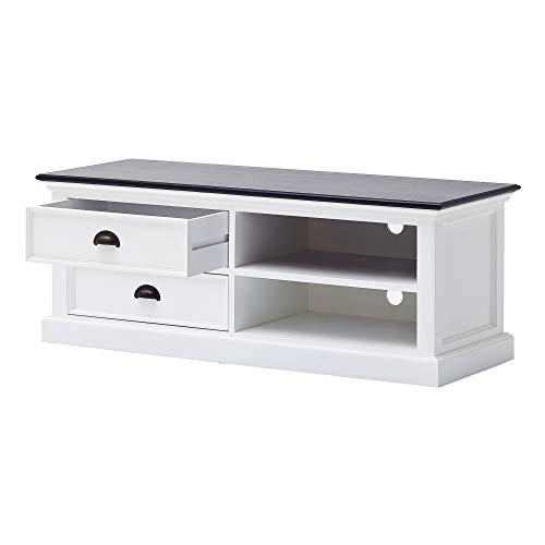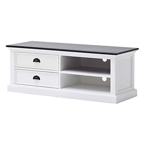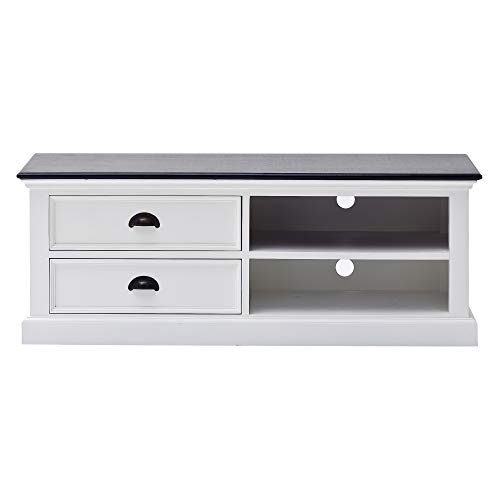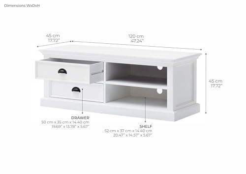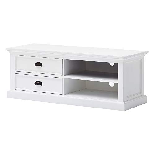 Halifax Pure White Mahogany Wood Large 2-Tier Tv Stand And 2 Drawers