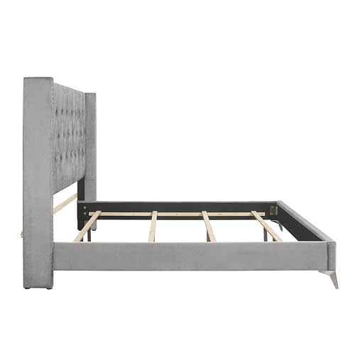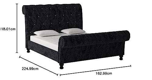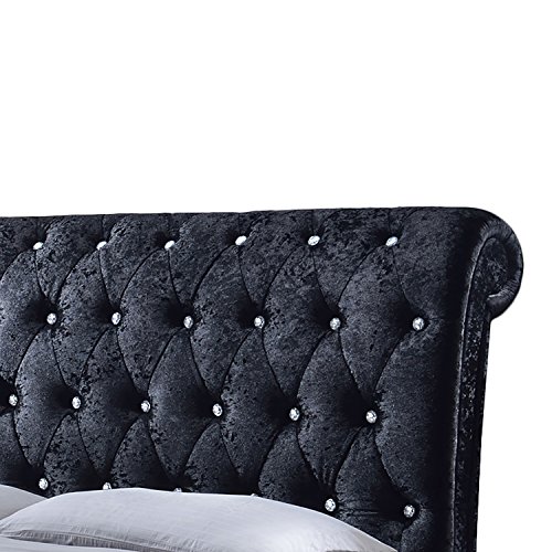 Baxton Studio Wholesale Interiors Castello Velvet Upholstered Faux Crystal-Buttoned Sleigh Platform Bed, Queen, Black