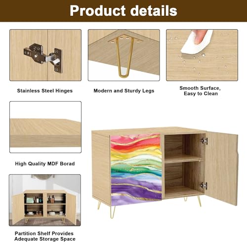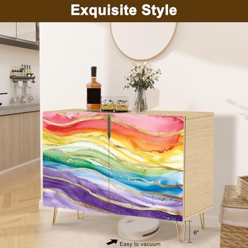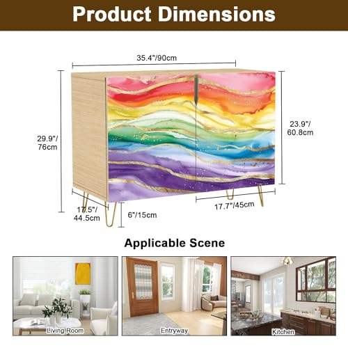 Mid Century Sideboard Buffet Kitchen Storage Cabinet with 2 Doors Abstract Swirl Wave Flow Liquid Lines elemen for Website Cover Cupboard Console Table Bar Cabinet for Dining Room Hallway