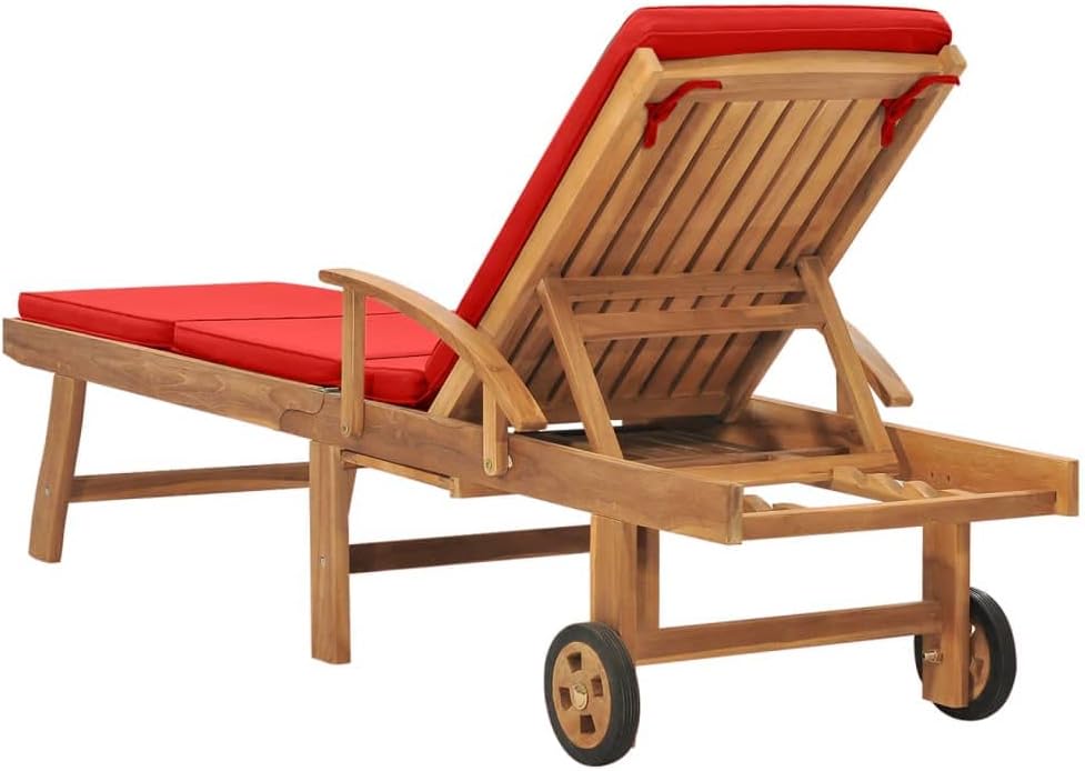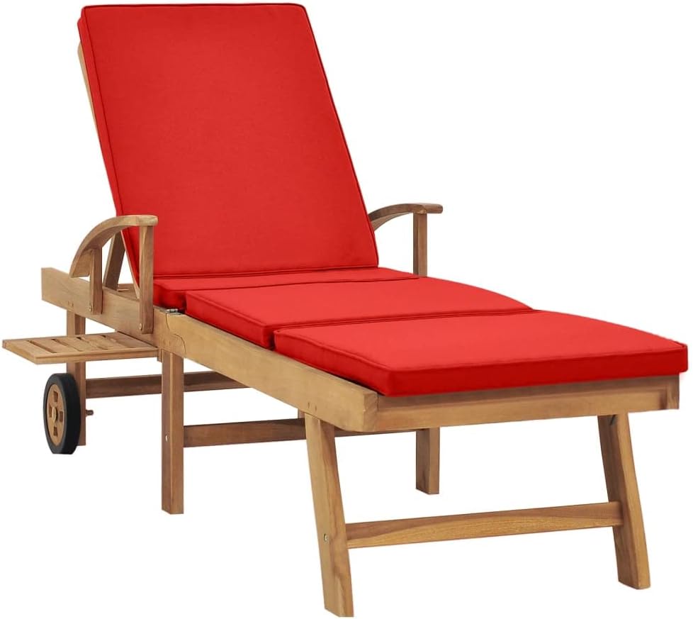 Sun Lounger with Cushion Solid Teak Wood Redlightweight balcony furniture Patio lawn camping sun tanning E4chaise pool lounge beach reading folding chairs for adults outdoor
