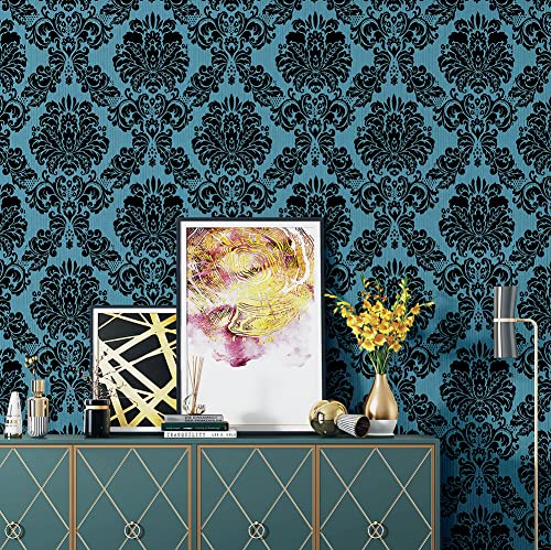9148-10M Damask Peel and Stick Wallpaper 17.7" x 32.8ft Removable Wall Covering Contact Paper Self-Adhesive Damask Furniture Paper Shelf Liner Vinyl Roll