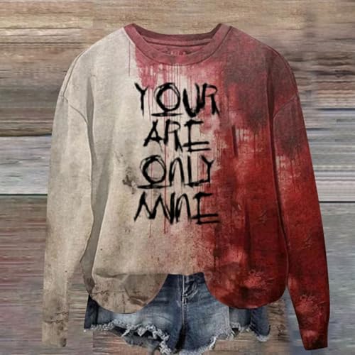 Halloween I'm Fine Bloody Sweathirt for Women,Women's Shenanigans Blood Splatter Shirts Bloodstained Pullover Tshirt