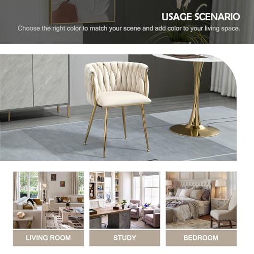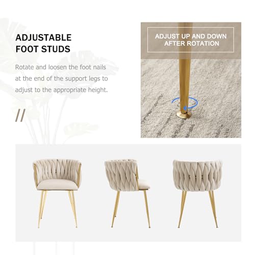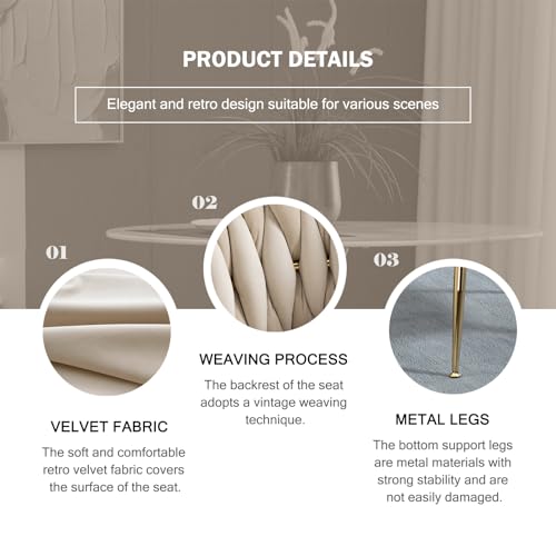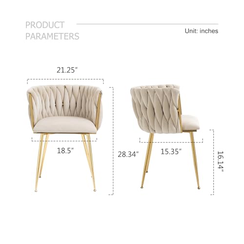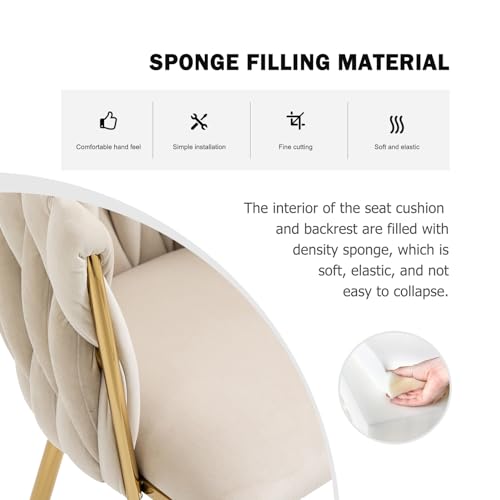 Velvet Dining Chairs Set of 2, Modern Upholstered Dining Chairs with Gold Metal Legs for Dining Room, Vanity, Kitchen, Living Room(Beige)
