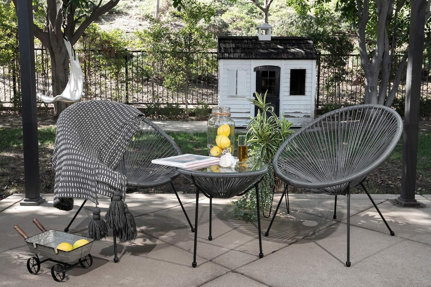 Barton 3 Pieces Acapulco Chair Set w/Glass Table Grey Outdoor Patio Furniture Wicker Rattan Modern Conversation Chat Seating