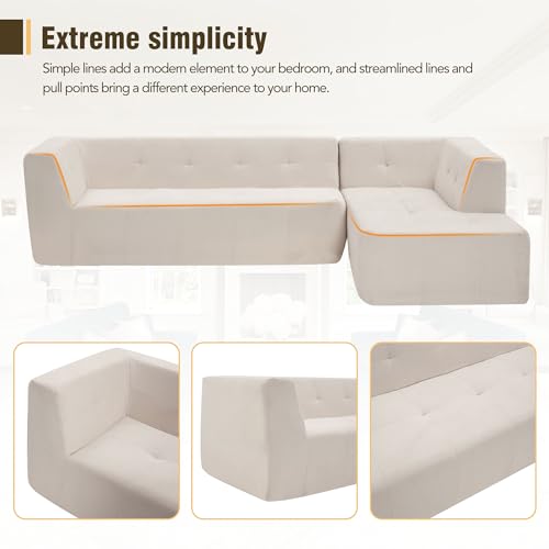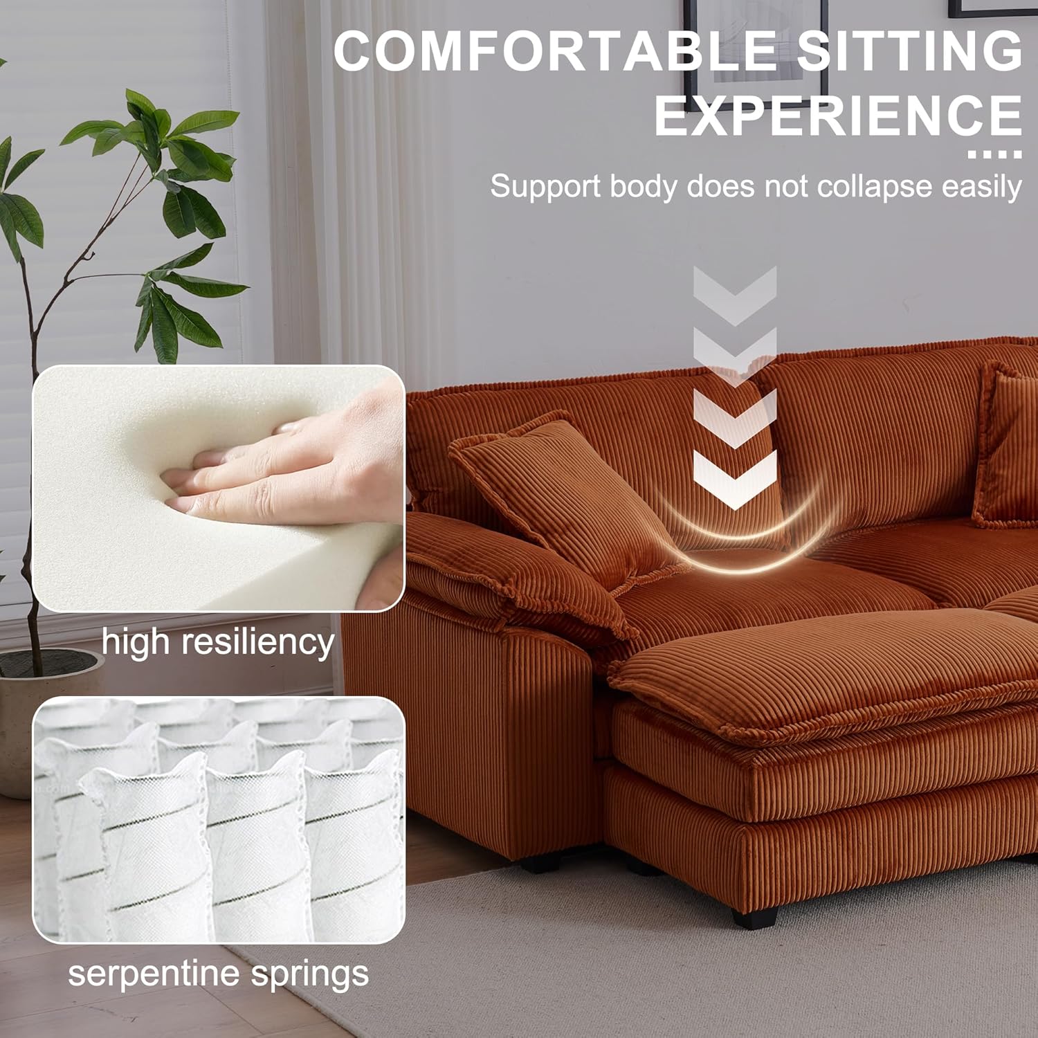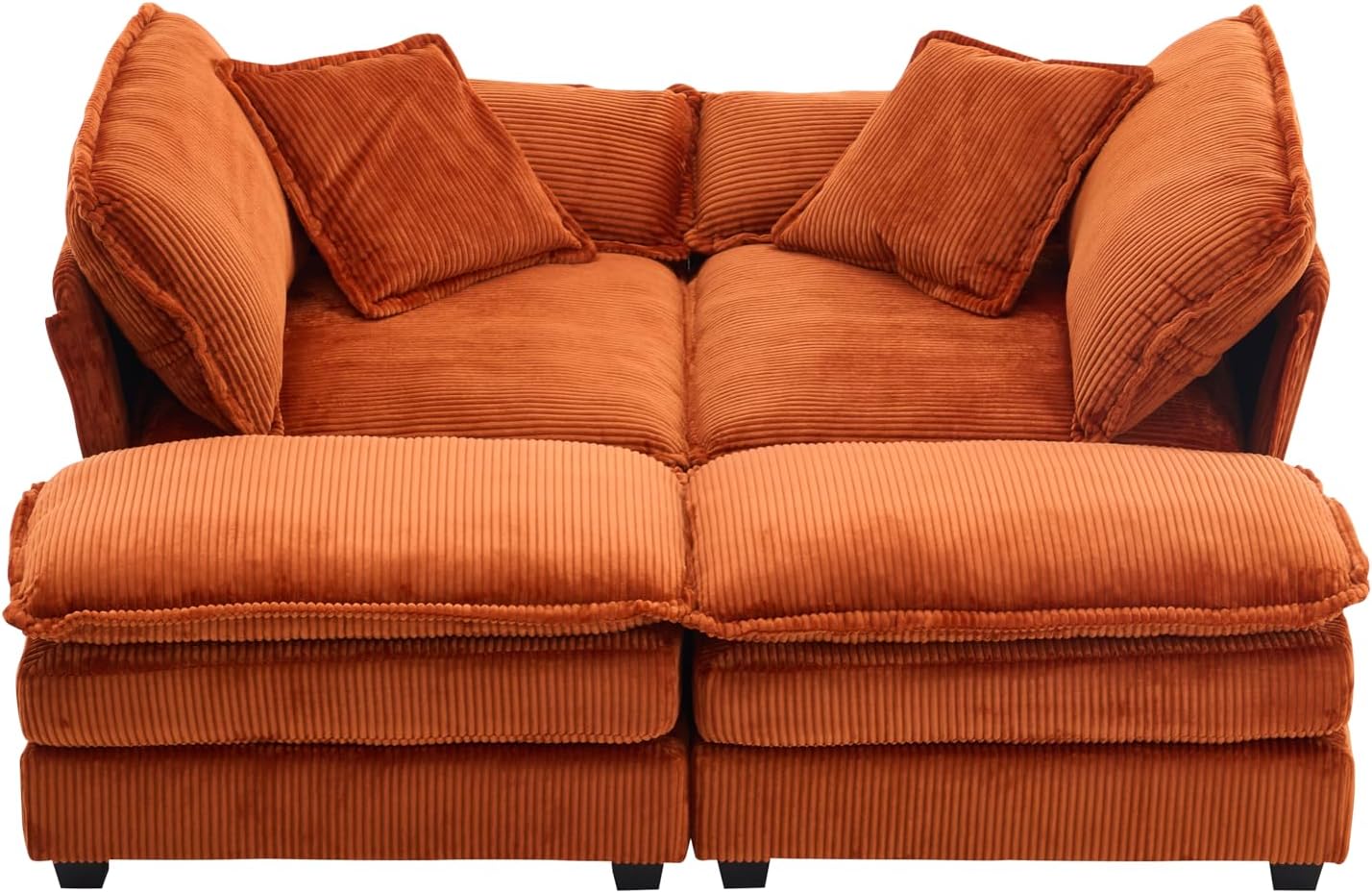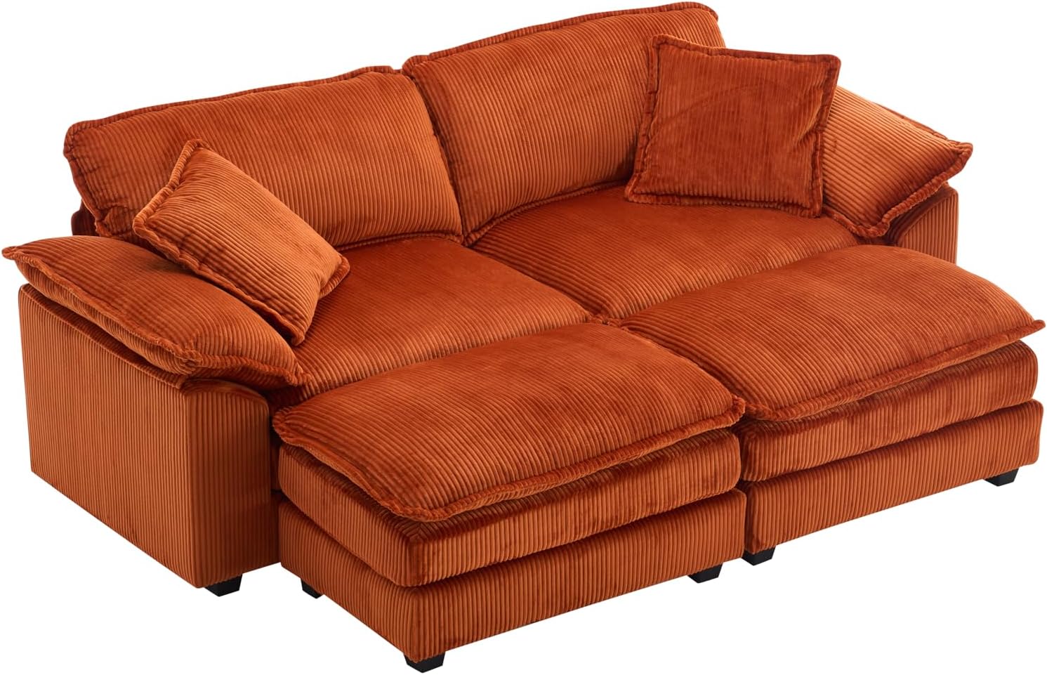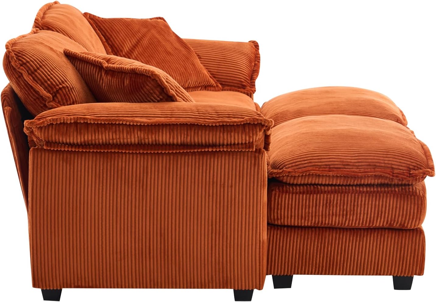 Oversized Convertible Sleeper Sofa Indoor, Deep Seat Chaise Lounge Chair, 2 Layer Thicken Upholstered Sleeper Sofa with Ottoman & Pillows, 84.6" W Loveseat Sofa for Living Room (Orange)