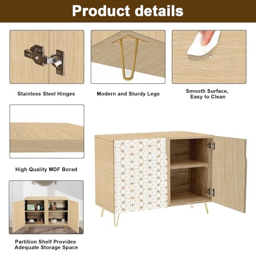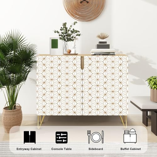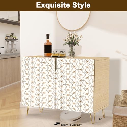 Mid Century Sideboard Buffet Kitchen Storage Cabinet with 2 Doors seamless pattern 3D for festive brochure website print Cupboard Console Table Bar Cabinet for Dining Room Hallway