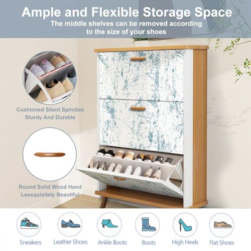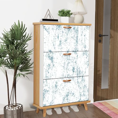 Shoe Storage Cabinet for Entryway Rounded Squares Black White Seamless Pattern Geometric Website 3 Flip Drawers Shoe Cabinet Hidden Rotating Wooden Shoe Rack Storage Organizer