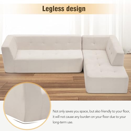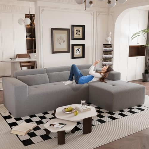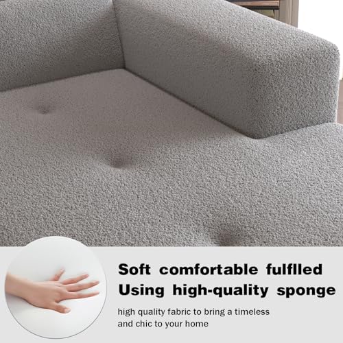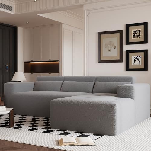 109'' Modern Modular Sectional Sofa, Teddy Fabric L Shaped Couch, 3 Seat Corner Sofa Couch, Modern Upholstered Couch with Chaise & Pillows for Living Room Apartment, Assembly-Free, Grey