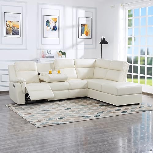 TRIPLE TREE 110.2'' Manual Reclining Sectional Sofa with Streamlined Recline Seating,L Shape Sofa with Consoles and 2 Cup Holders,Sofa Couch with Storage for Living Room,Beige