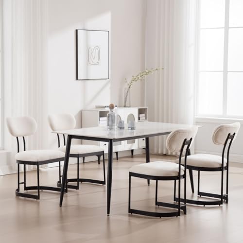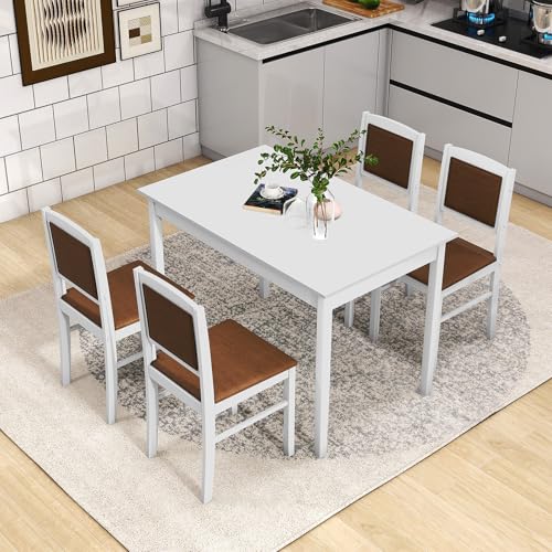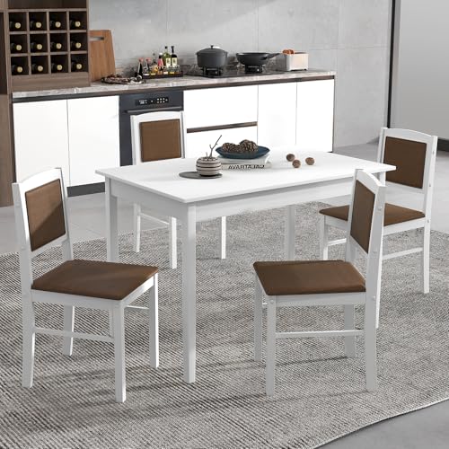 GOFLAME 5-Piece Dining Table Set for 4, Rectangular Kitchen Table & 4 Chairs with Solid Wood Legs, Padded Seat & Backrest, Upholstered Dinette Set for Dining Room, Breakfast Nook, Restaurant, White