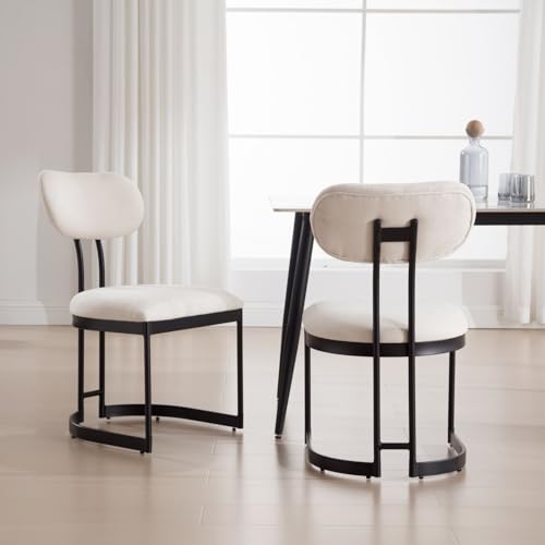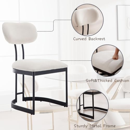 Gold Dining Chairs with Backs Modern Upholstered Kitchen Chairs Set of 2 Beige Linen Dining Room Chairs for Kitchen/Living Room/Restaurant