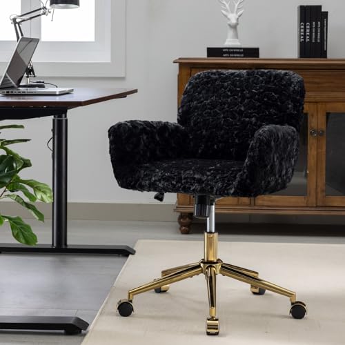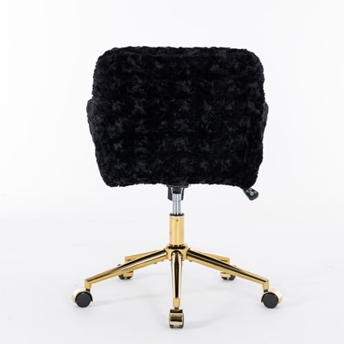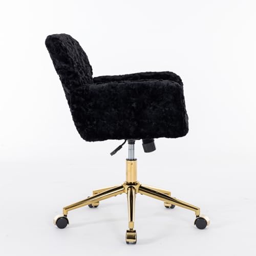 INMOZATA Swivel Home Office Desk Chair, Alpaca Fleece Upholstered Office Chair with Gold Base, Swivel Adjustable Computer Vanity Chair for Women Girls Vanity Desk Bedroom Dorm Living Room Beige