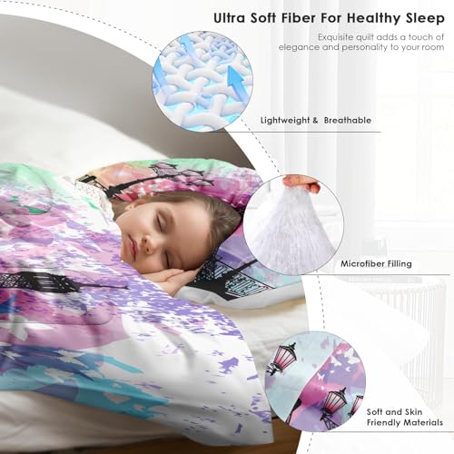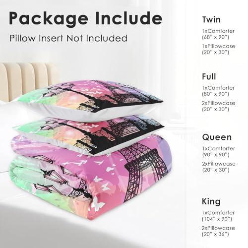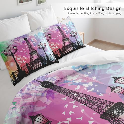 Comforter Set Full Size, Vintage Love Retro Soft Bedding Set for Kids and Adults, Paris Eiffel Tower Vintage Comforter Set with Pillowcase, for Home Bedroom Bed Decor