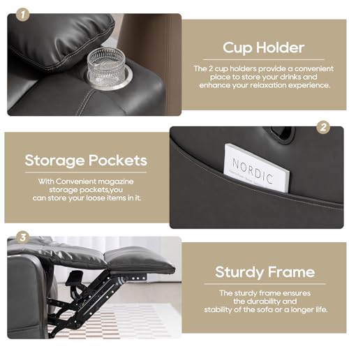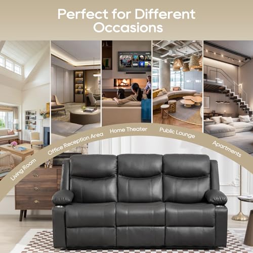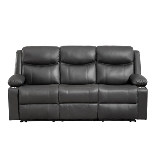 Manual Reclining Sofa - 3 Seat Recliner Sofa with Heat & Massage Function, Wall-Hugger Reclining Sofa for Living Room (Brown)