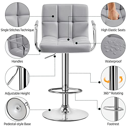 Yaheetech 4pcs Adjustable Bar Stools Kitchen Counter Barstools Bar/Counter Height Stool Chairs PU Leather Hydraulic Swivel Dining Chair with Armrest, Beige