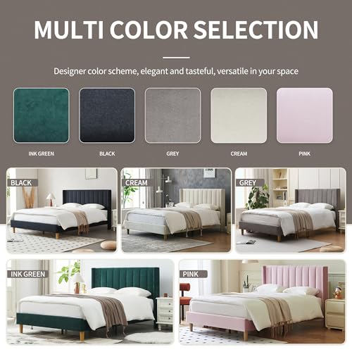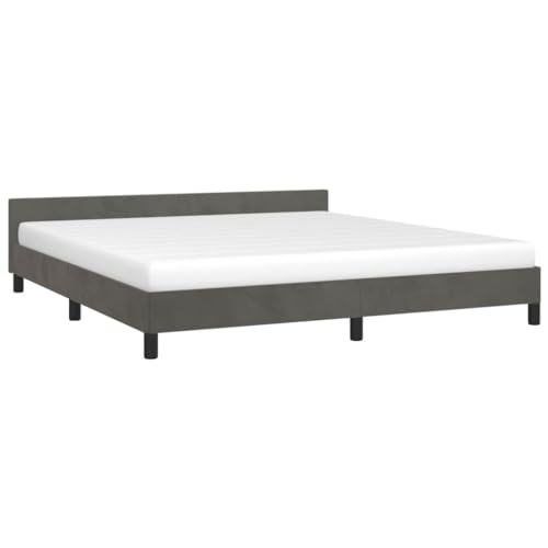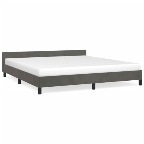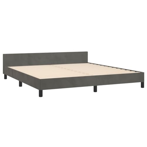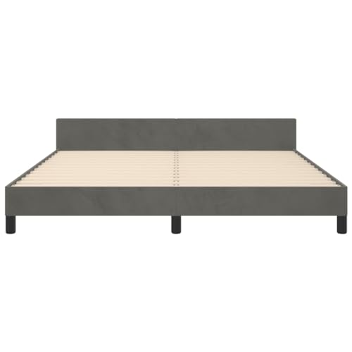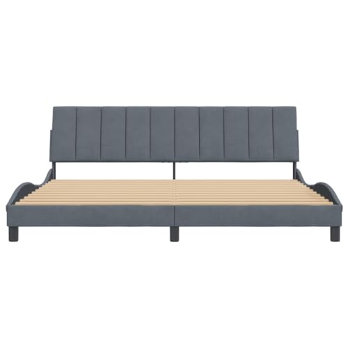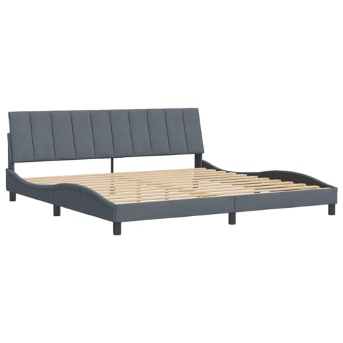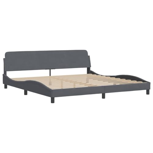 vidaXL Velvet Bed Frame Fabric Upholstered Platform Bed with Headboard, Scandinavian Style/Slats Support/No Box Spring Needed/Easy Assembly, Dark Grey California King Bed