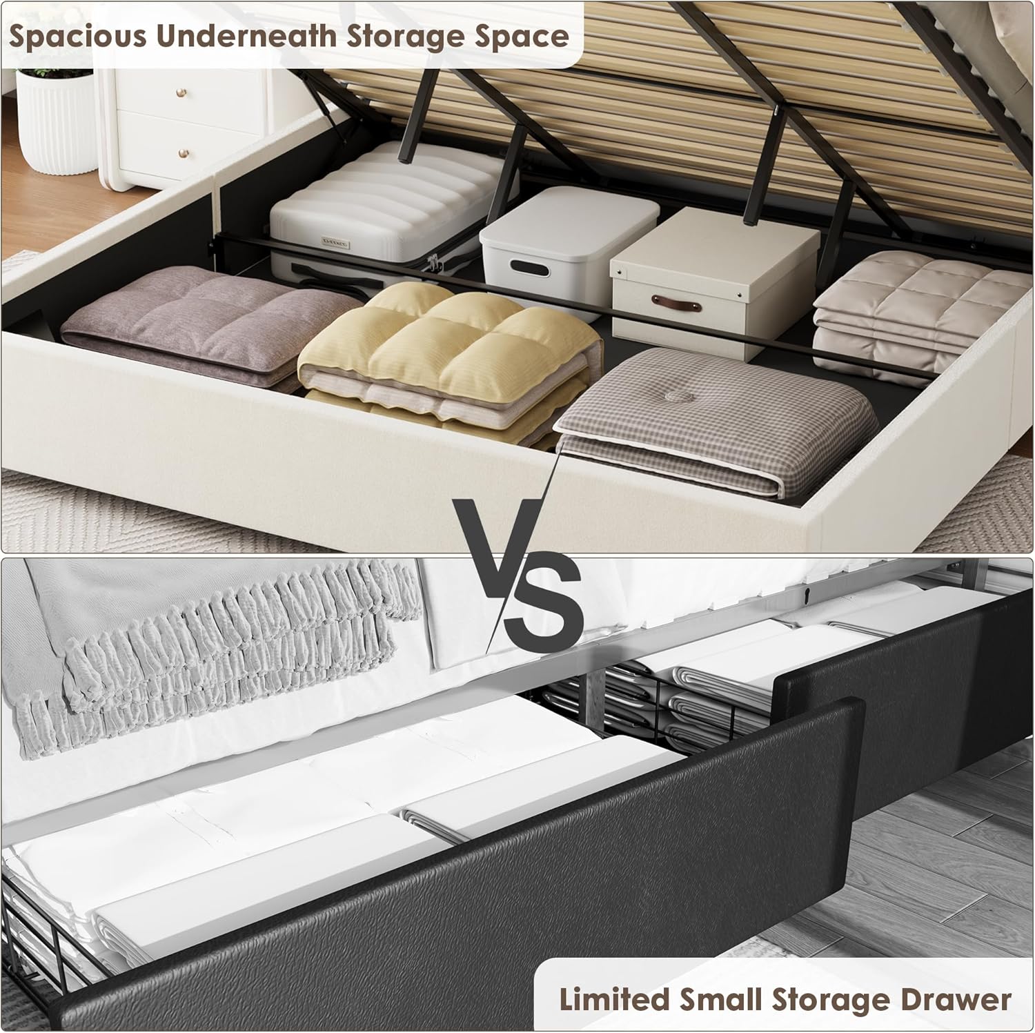 Liftable, beige velvet full-size bed, simple and elegant style, liftable velvet cushioned double bed, beige