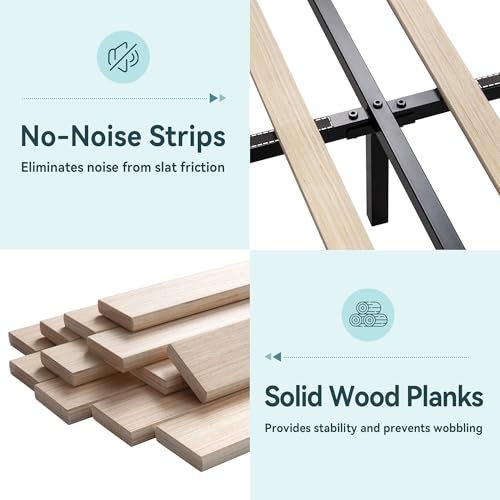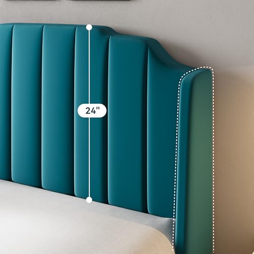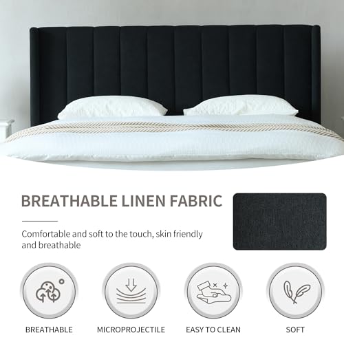 YUHUASHI upholstered platform bed frame/twin bed frame/modern geometric double-wing design headboard/flannel and linen fabric/easy to assemble no noise (INK GREEN, Queen (U.S. Standard))