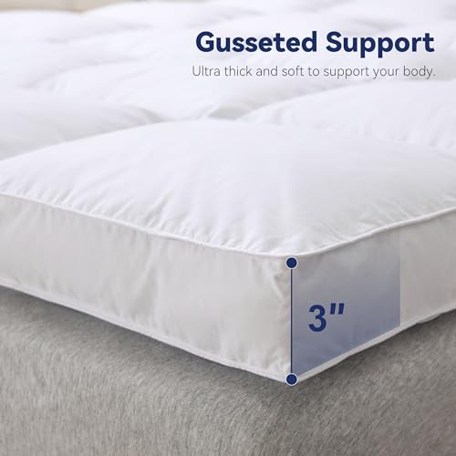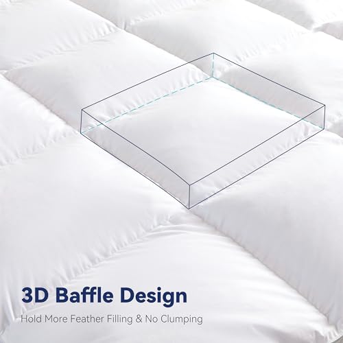 3 Inch White Goose Feather Mattress Topper,King Feather Bed Topper,Mattress Cover with Straps,Ultra Soft Pillowtop,100% Organic Cotton Fabric(78”x80”)