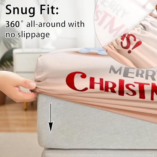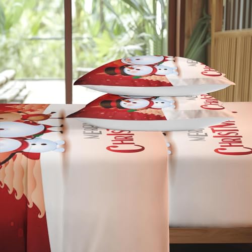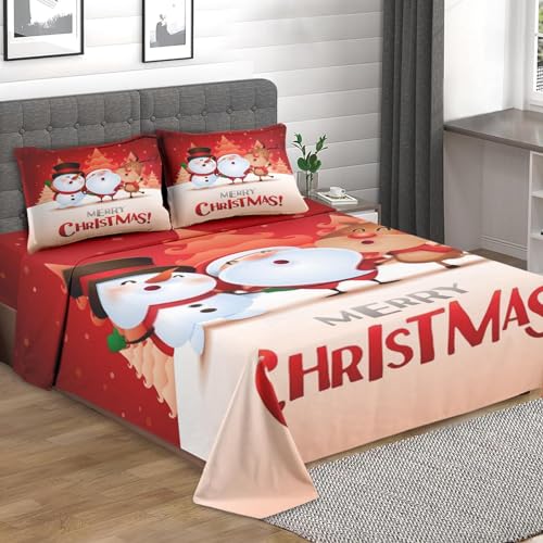 4 Pcs Fitted Sheet Set Full Size with 16" Deep Pocket, Cute Winter Cardinal Bedding Set with Pillowcases for Kids and Adults, Birds Christmas Red Flat Bed Sheet Set