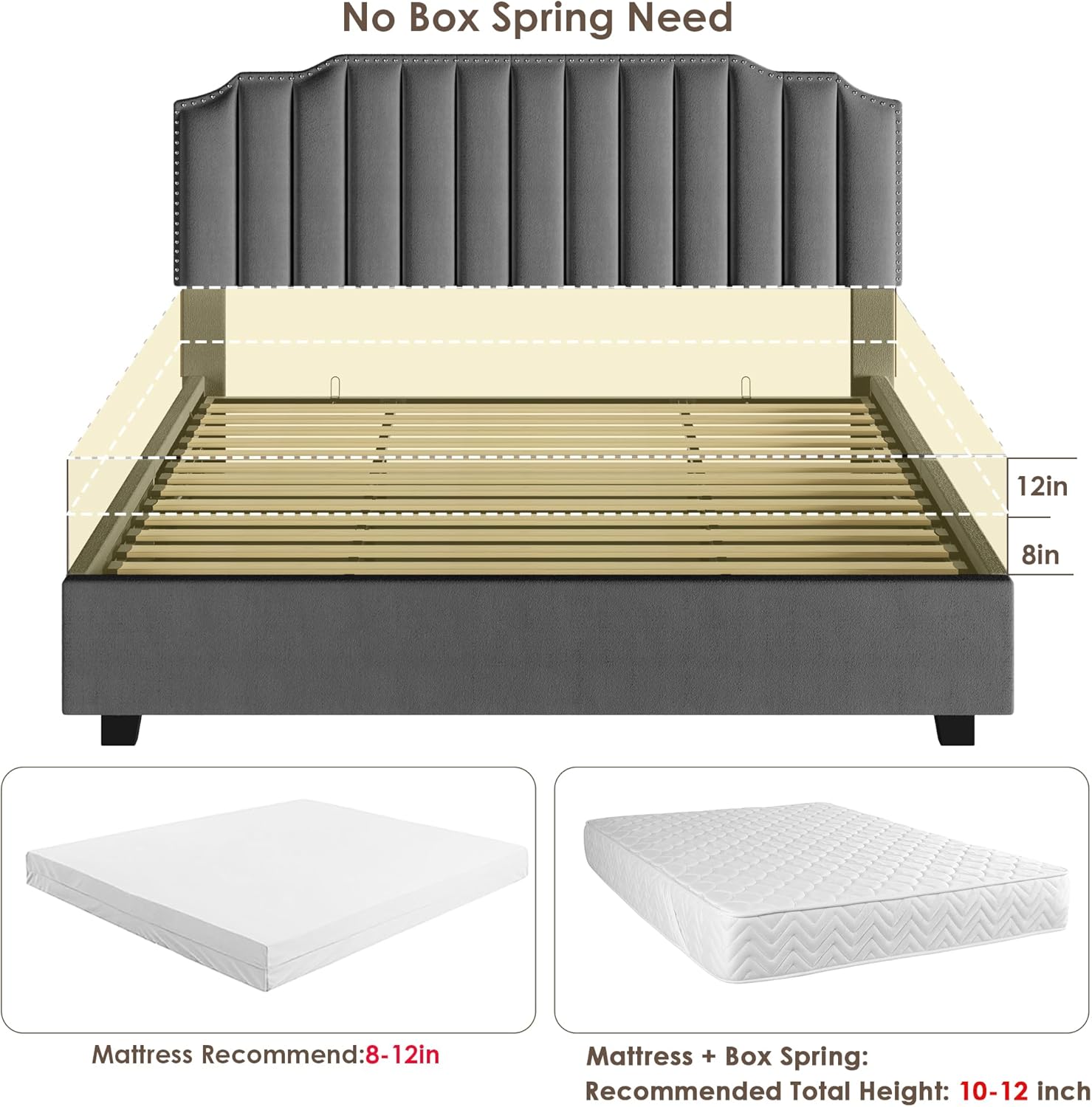 Liftable, beige velvet full-size bed, simple and elegant style, liftable velvet cushioned double bed,Gray
