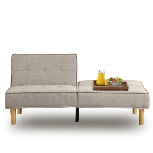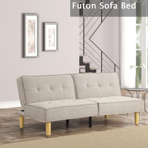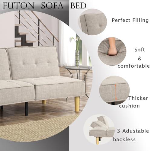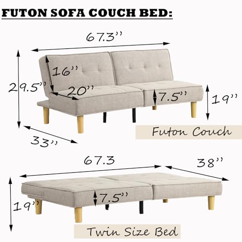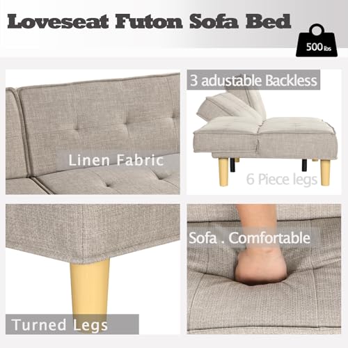 KORZEY Convertible Sleeper Futon Couch, Sofa Couches with 3-Level Adjust Backrest, Futon Loveseat Sleeper for Living Room, Small Apartment, Office,Begie Fabric