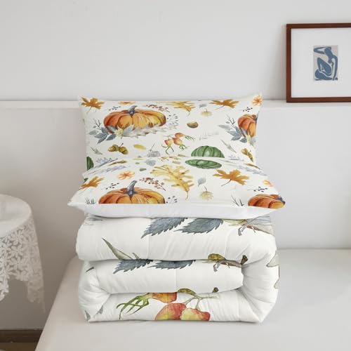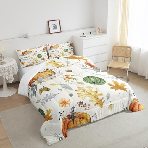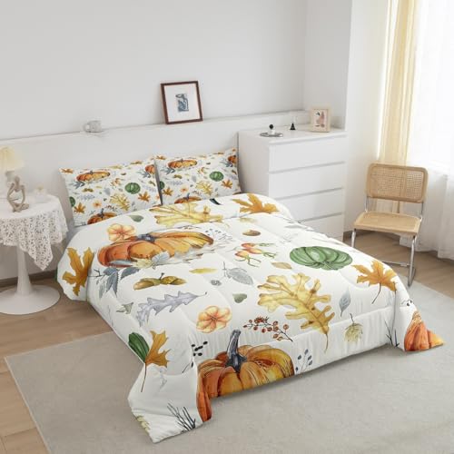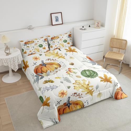 Erosebridal Cartoon Car Bedding Set for Boys, Gold Leaves Autumn Theme Comforter Set Full Size Pumpkin Print Down Comforter Geometric Plaid Checkered Duvet Sets for Kids Teens Adult Bedroom Decor