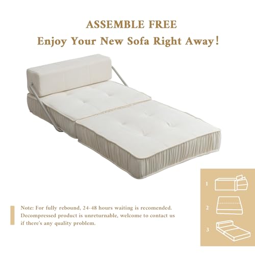[2024 New] 37-Inch Modular Floor Sofa Bed Couch, Chenille Sectional Convertible Sofa Bed with Spring Mattress, Foldable Couch Bed, Accent Armless Floor Couch with Removable Back Cushion-White