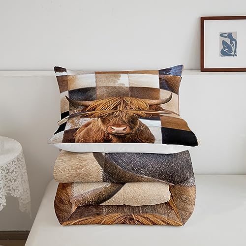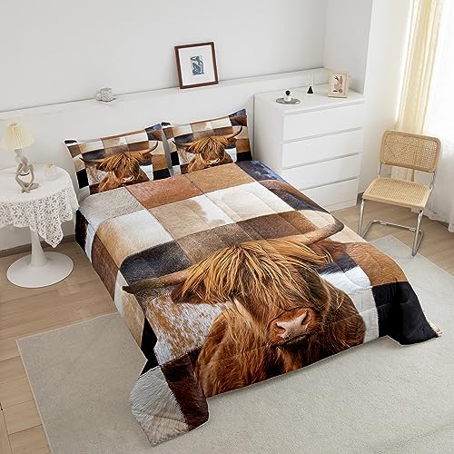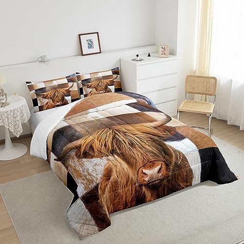 Western Cowboy Kids Comforter Set Full Size,Cowboy Horse Cactus Rustic Farmhouse Bedding Set,Boys Men Adults Bedroom Decor,Cowboy Hat Country Down Comforter,Black Retro Duvet Insert,2 Pillowcases