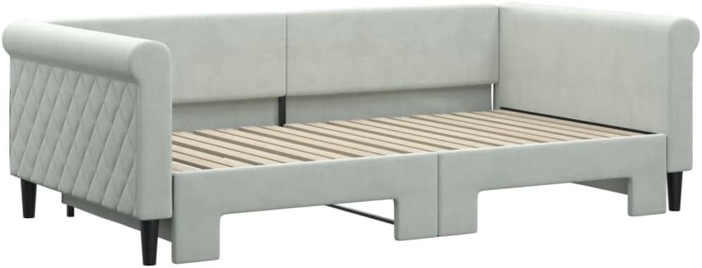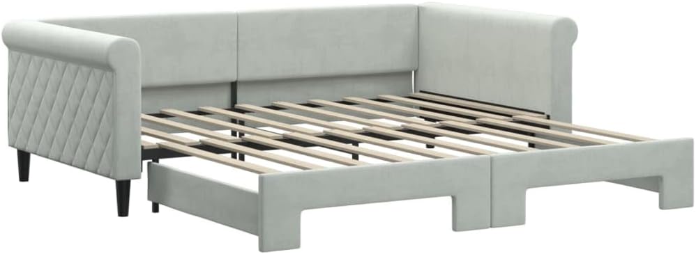 Daybed with Trundle Light Gray 39.4"x74.8" Velvet, Platform Bed/Double Bed Cama Queen Bed Platform Multifunctional Bed Suitable for Resort Guest Room Villa Bedroom