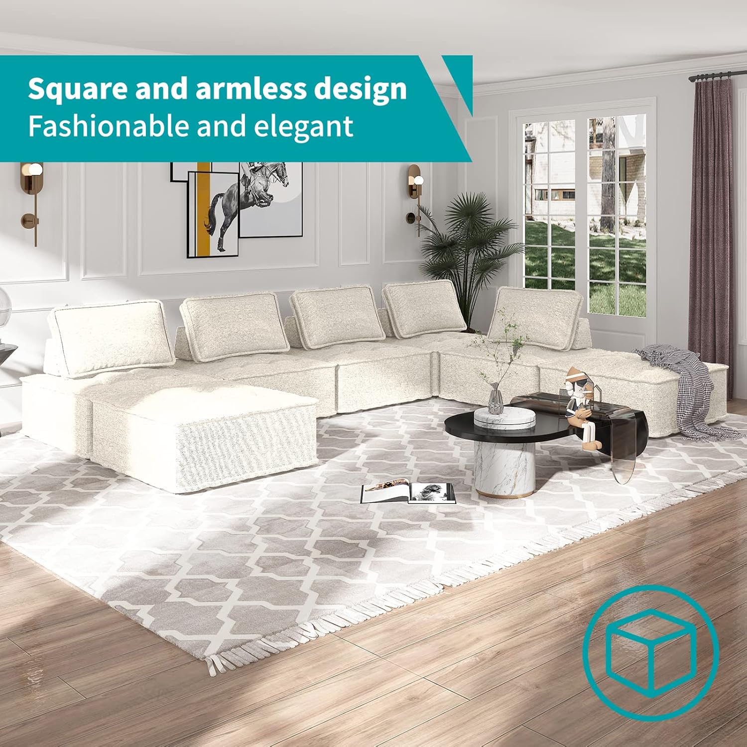 BALUS Modular Sectional Sofa Couch, 8 Seater Cozy Portable Couches, Armless Floor Sofa Couch, Soft Fabric Sofa Bed for Bedroom, Living Room and Sturdy Room, Free Combination, 8 PCS Beige