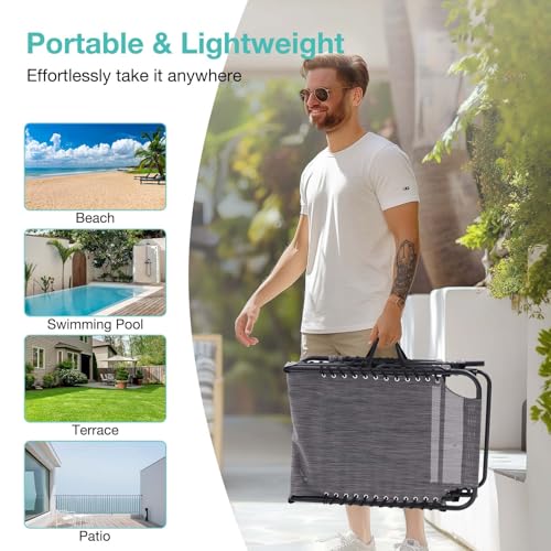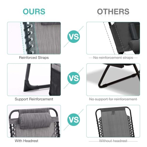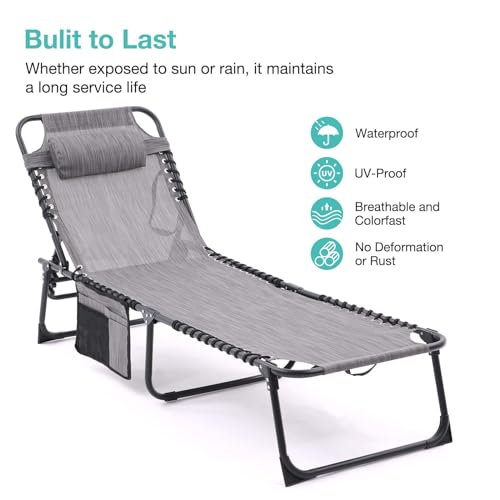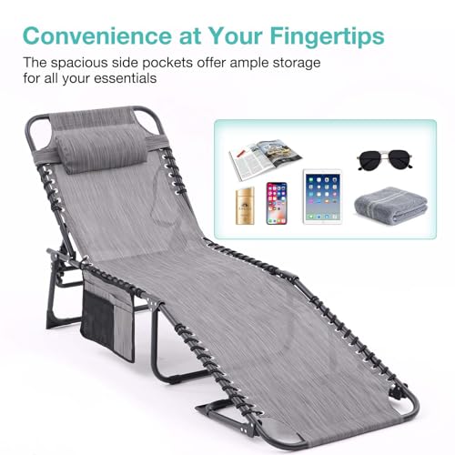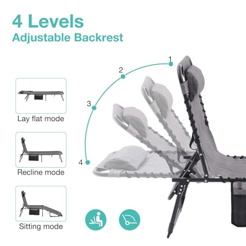 Set of 2 Outdoor Lounge Chairs Fold TanningChair 4-Level Adjustable, Portable Pool LoungeChair with Headrest&SidePocket, Coffee