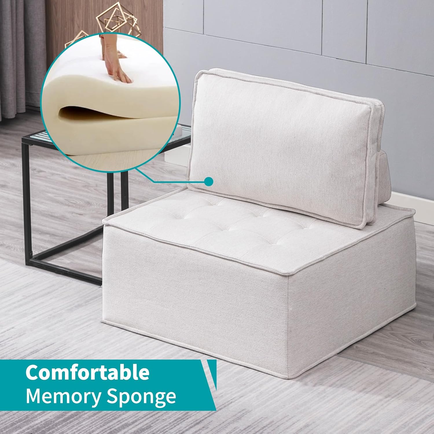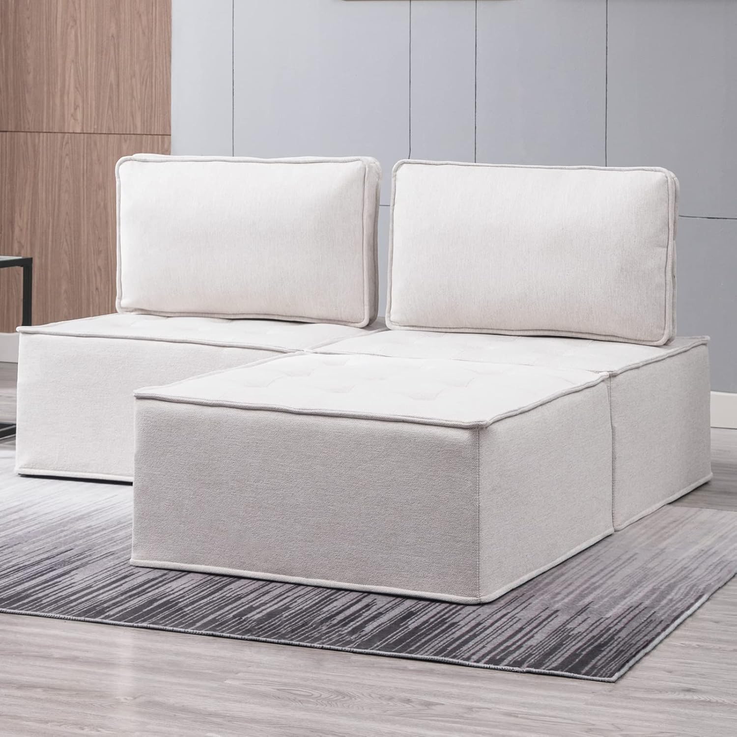 BALUS Sectional Sofa Couch, Modern Floor Sofa Couch with Soft Fabric, Armless Design for Living Room, Bedroom, Free Combination,3 PCS Beige