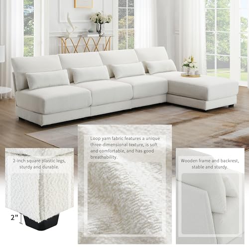 120*61"Oversized Deep Seat Sectional Sofa, Sectional Sofa with Reversible Chaise, 5-Seat Armless Sectional Couch, Modern Couch, Deep Seat Sofa, Convertible L Shaped Couch for Living Room (Green)